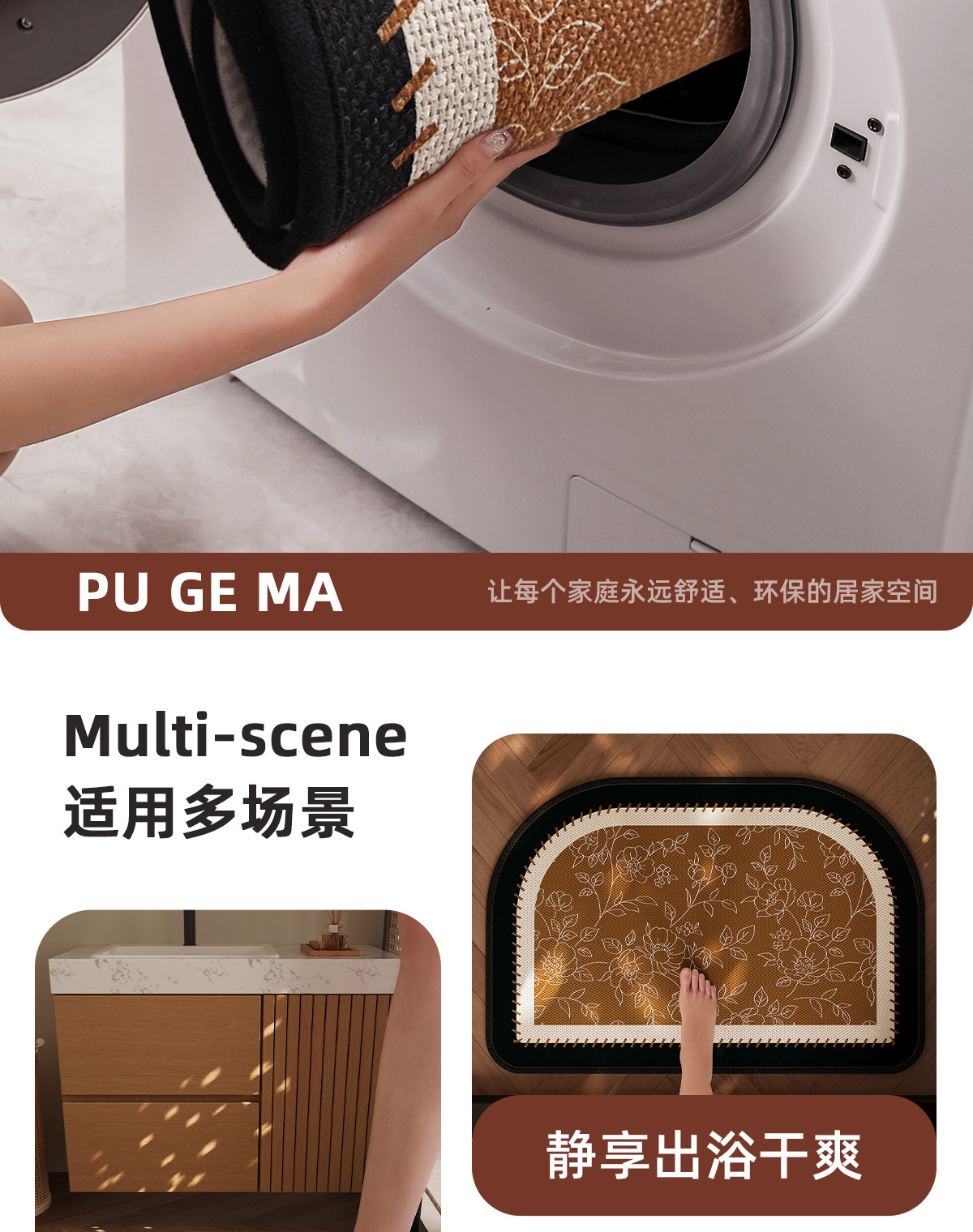 中古風浴室マット珪藻泥速乾吸水マットトイレ入り口滑り止めマット汚れ耐磨耗マット