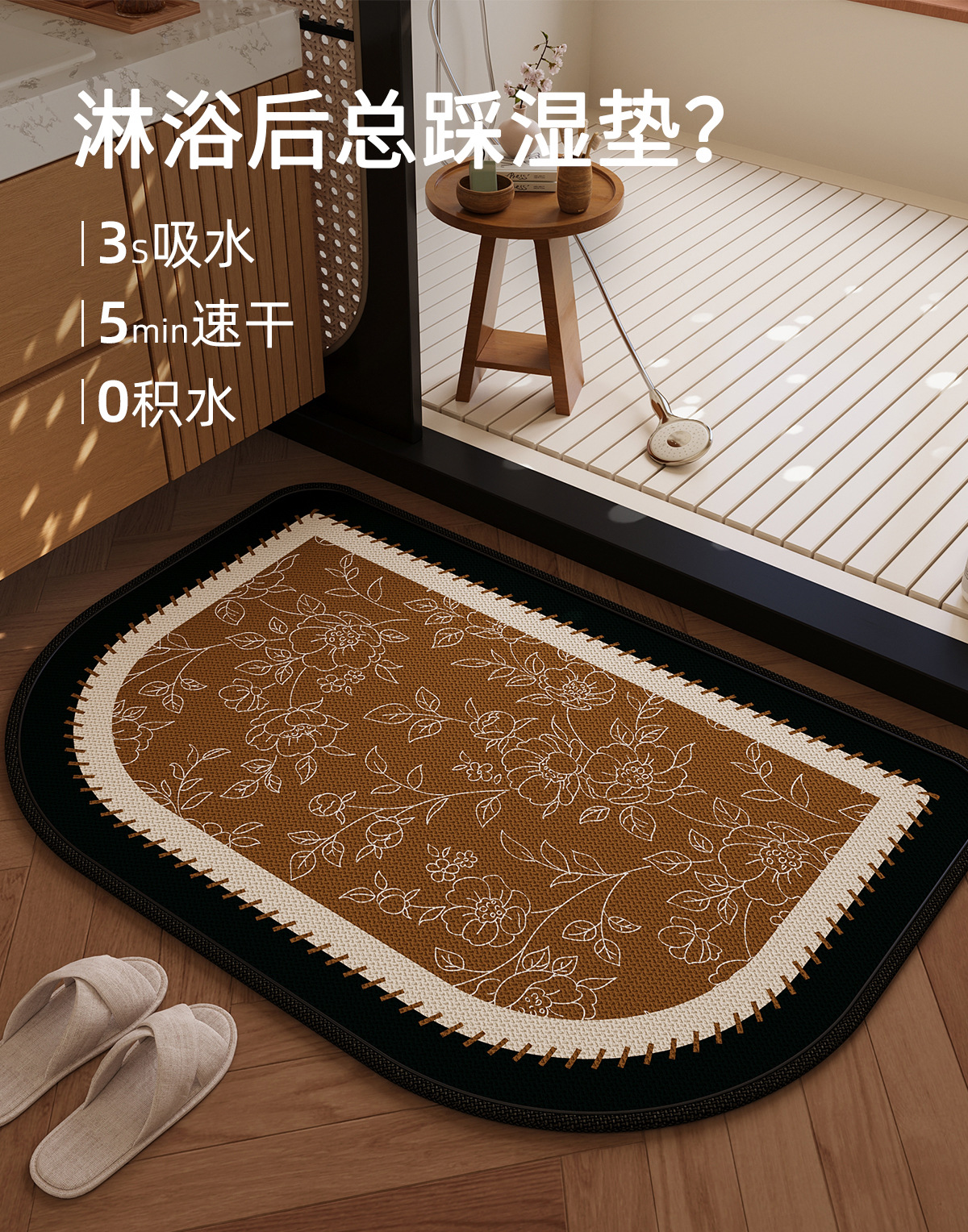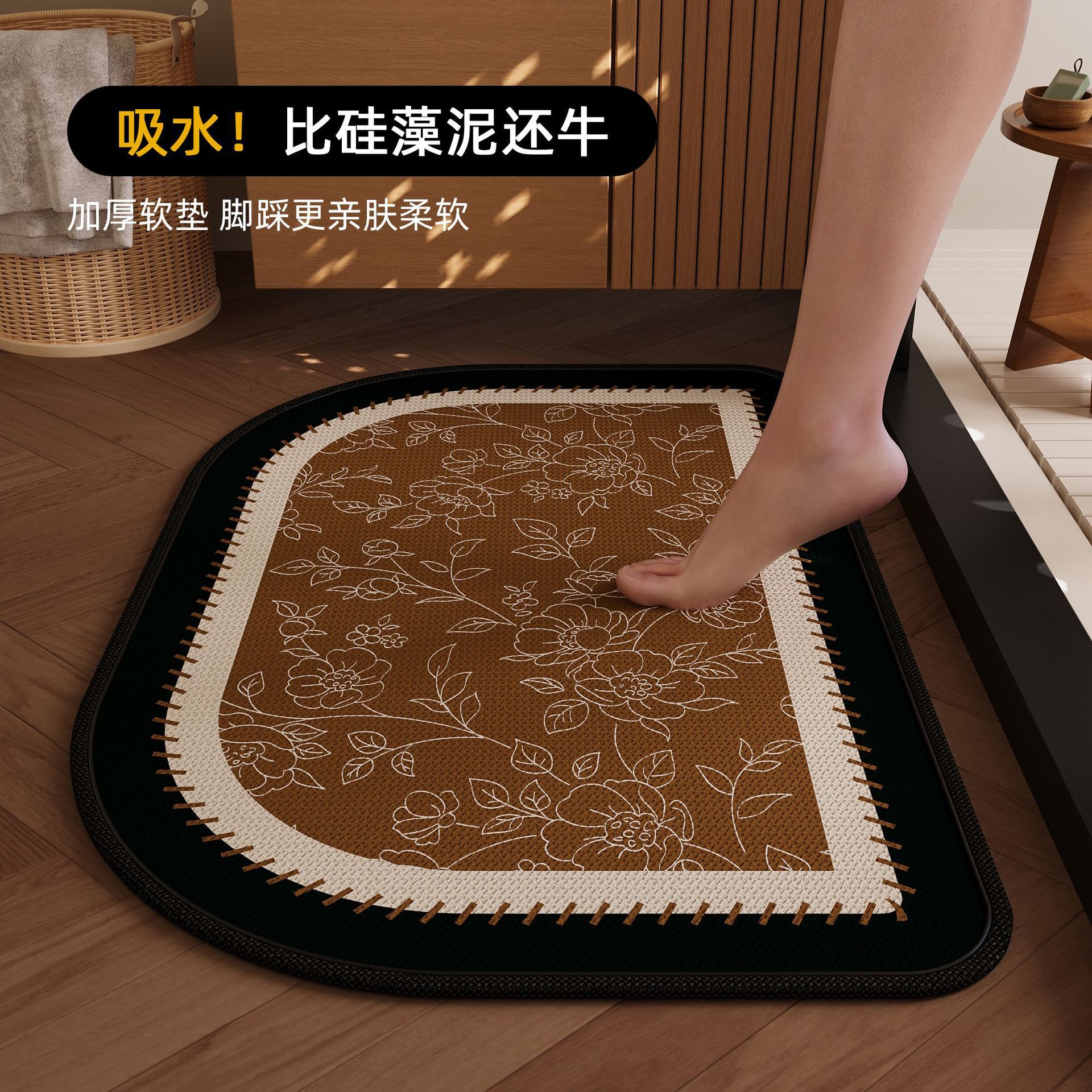 硅藻泥地垫法式复古浴室地垫卫生间门口防滑垫易打理吸水脚垫家用