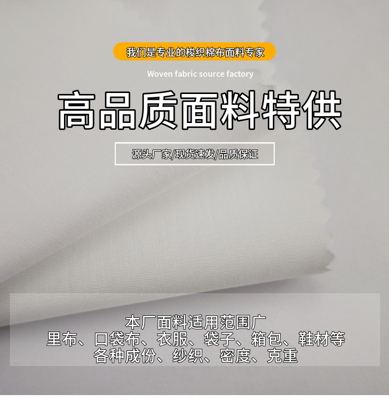 现货供应黑白TC棉布110/76可用于口袋布里布衬布底部
