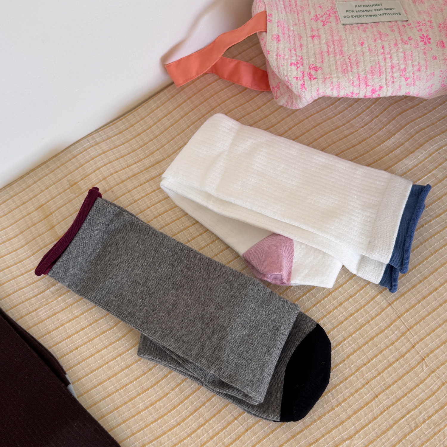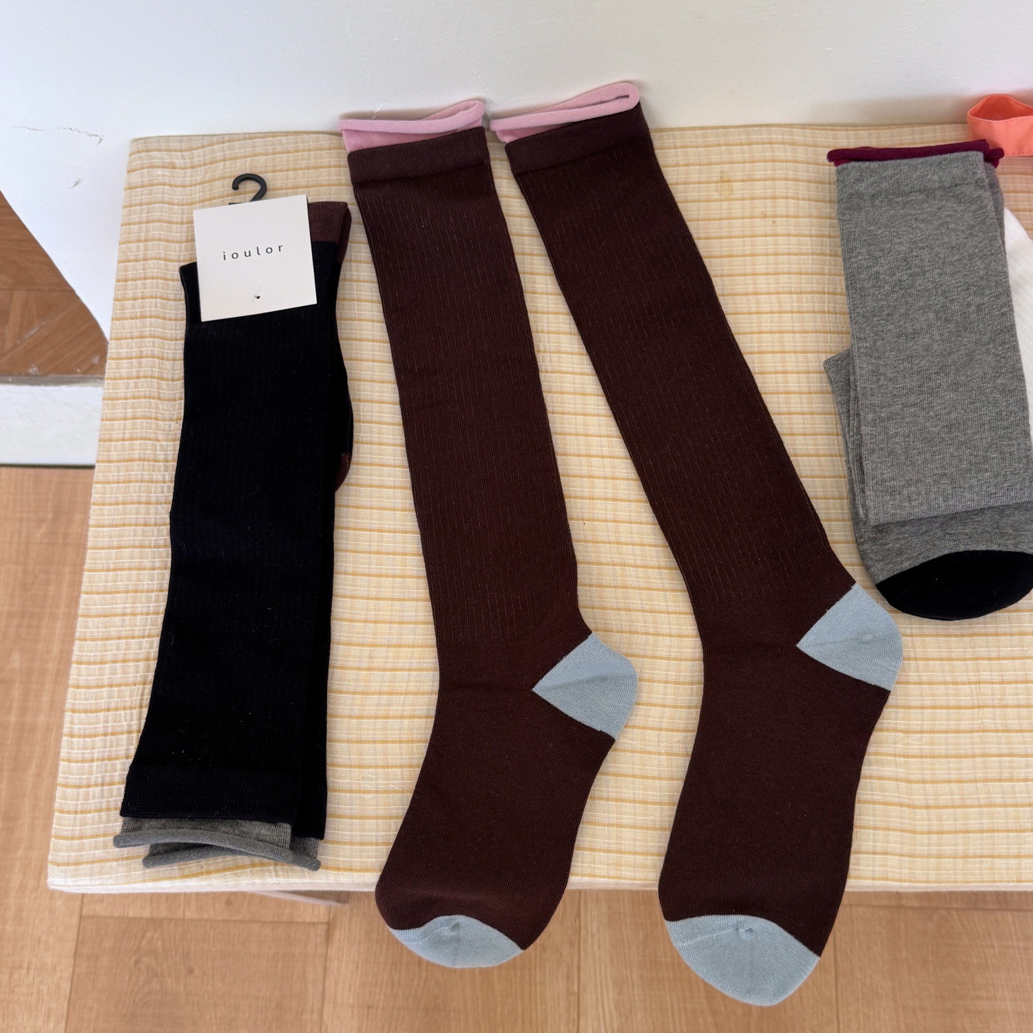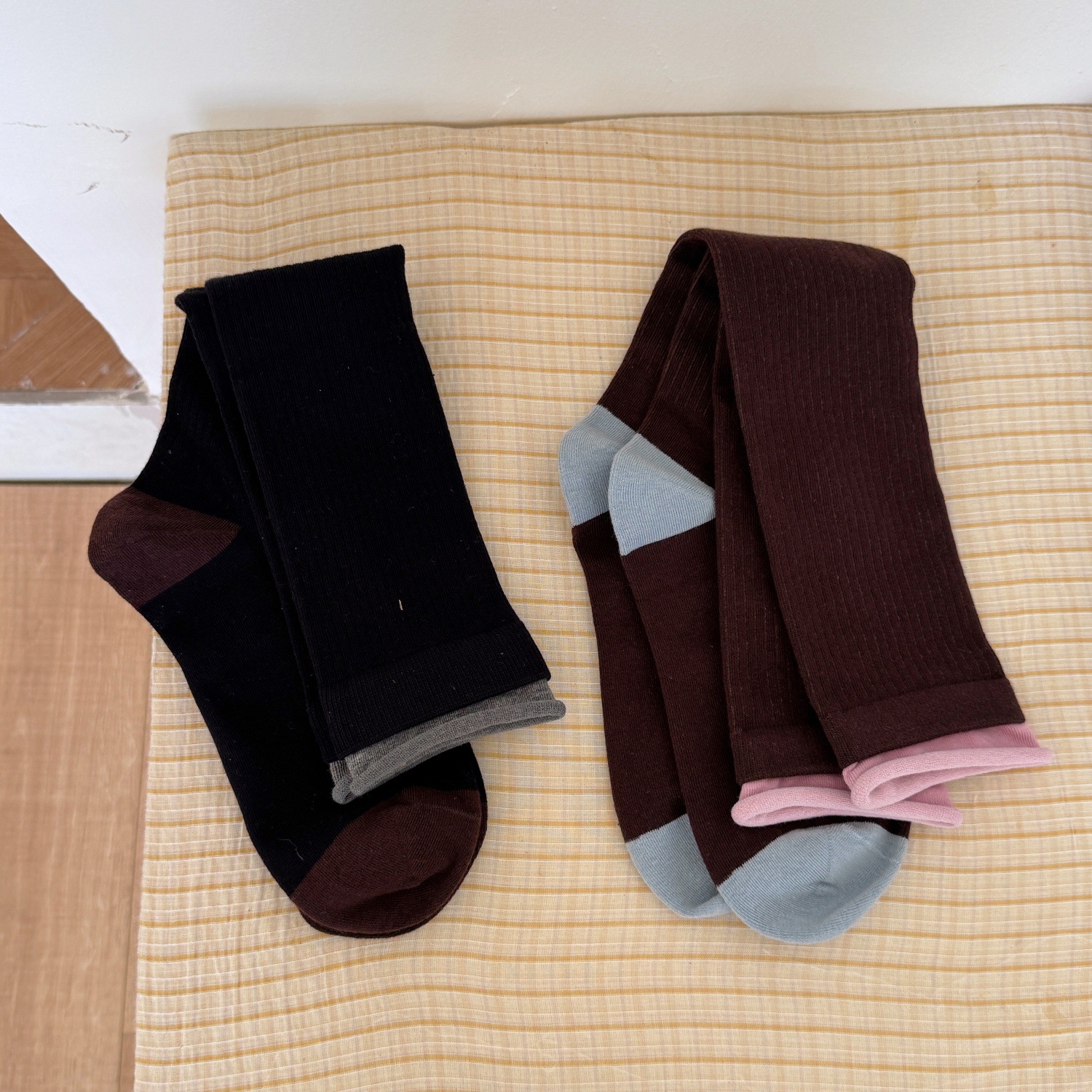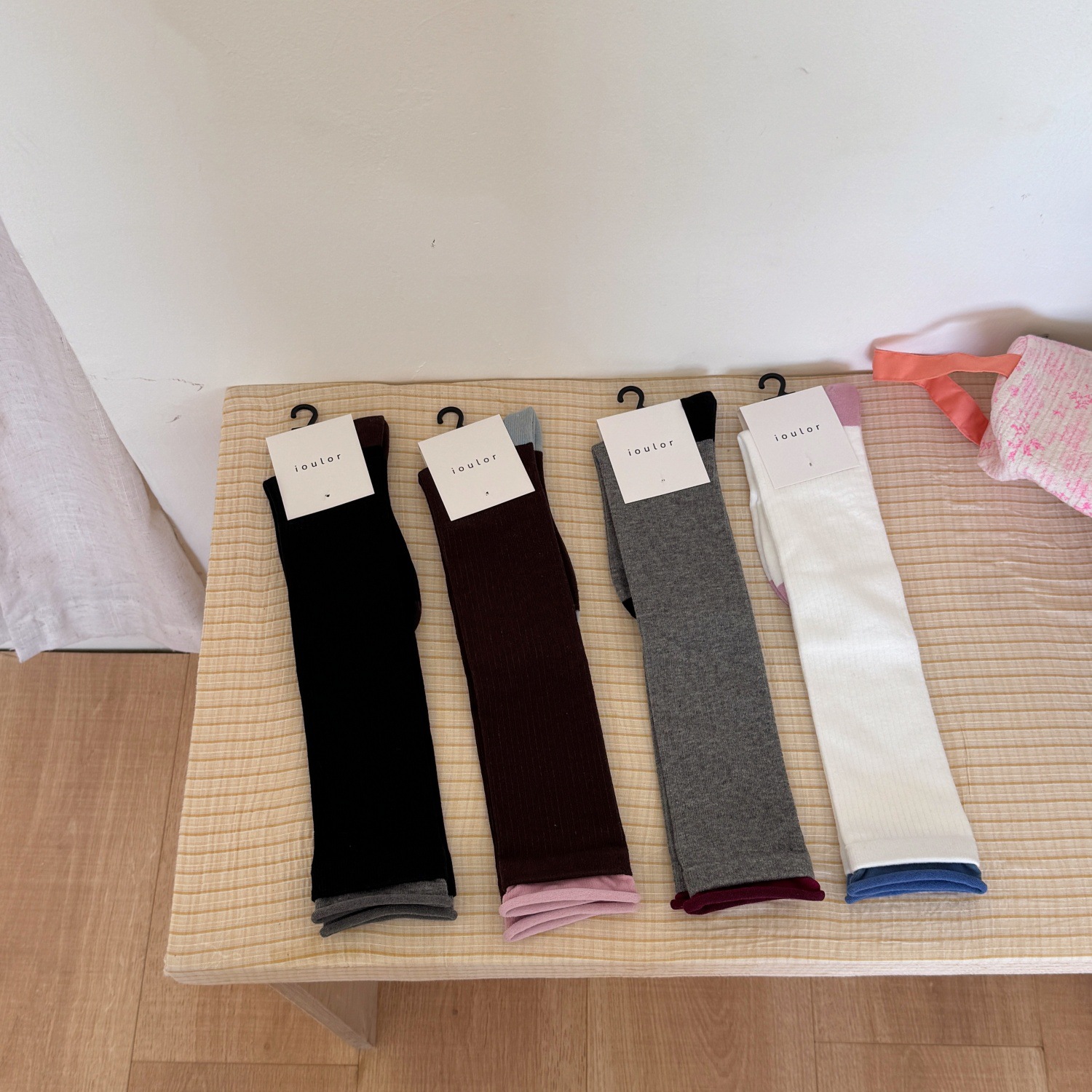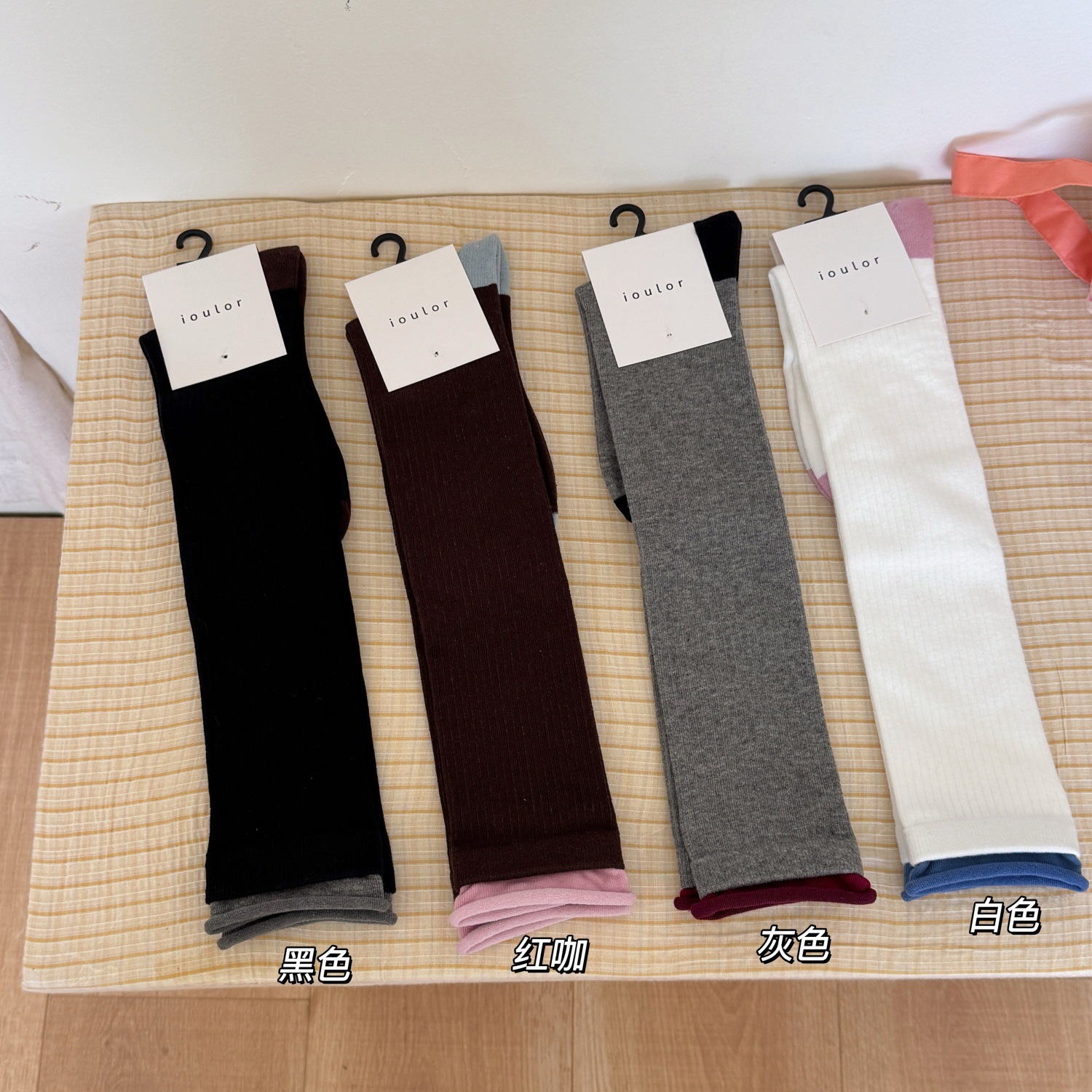 IOULOR新品拼色罗口堆堆袜设计感ins风袜子日系精梳棉无骨小腿袜