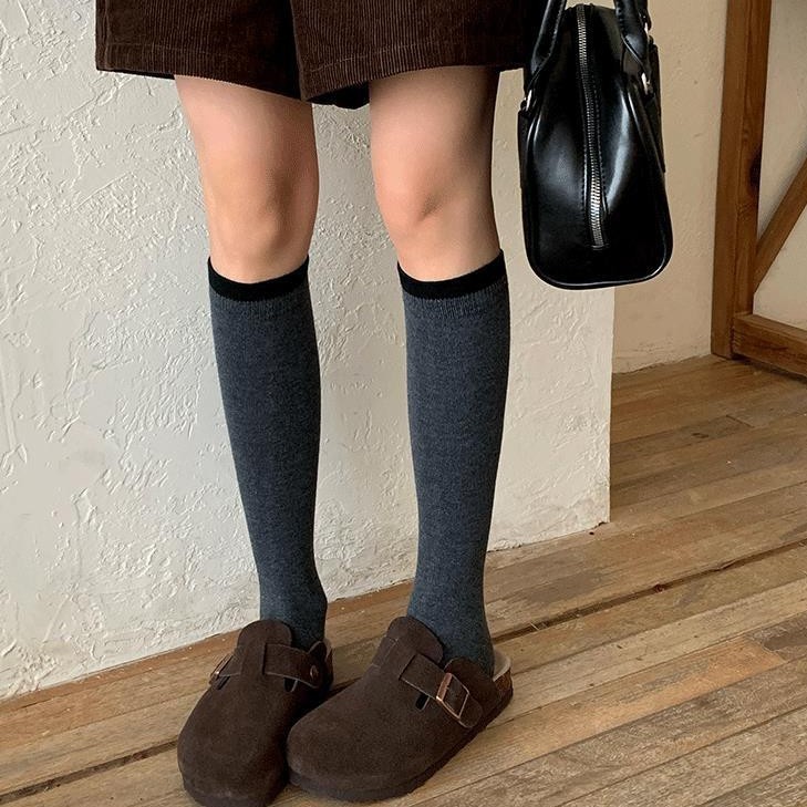 songmu淞木"桑蚕丝羊毛小腿袜女秋冬保暖撞色日系长筒堆堆袜女ins