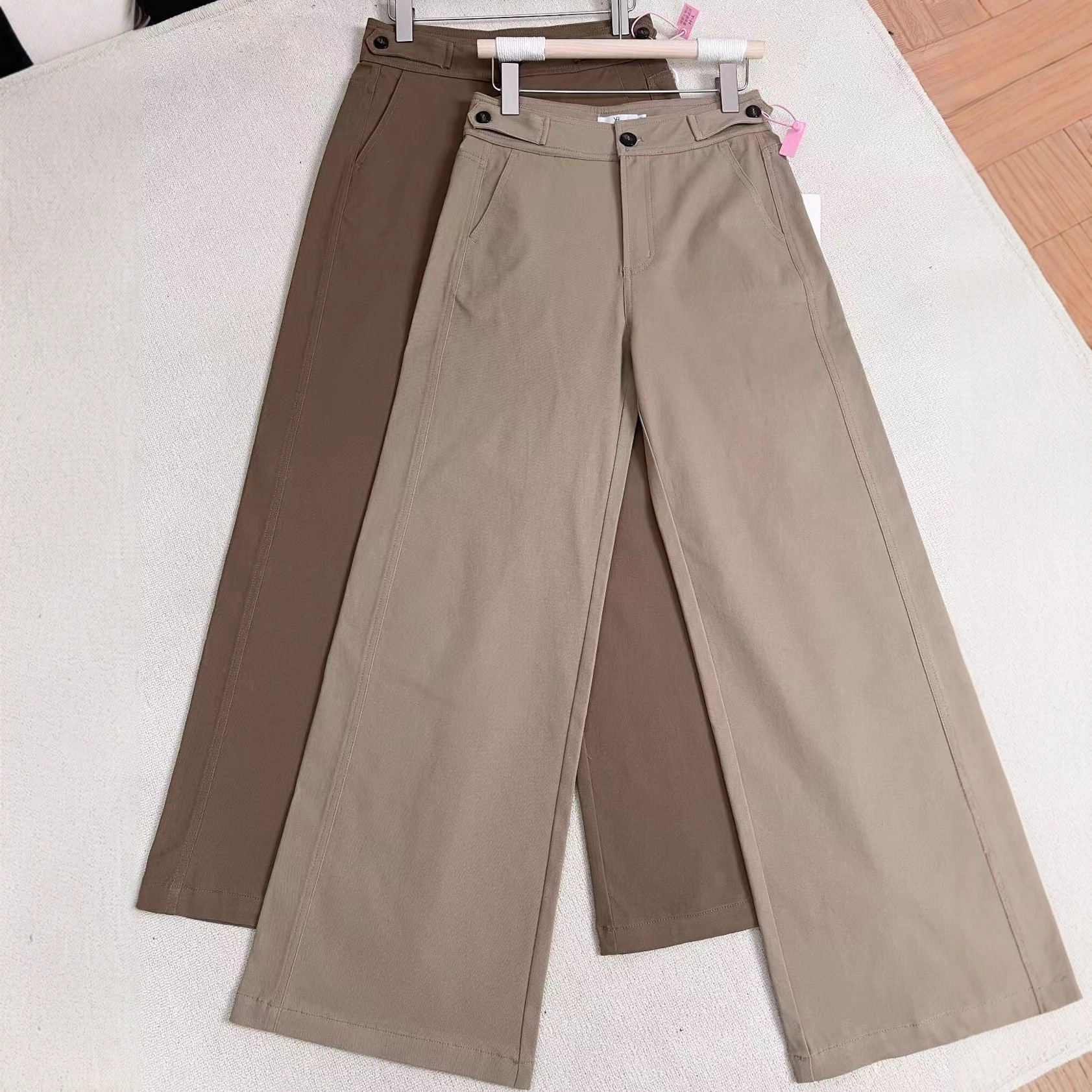 卡其色/深卡其 显瘦直筒长裤