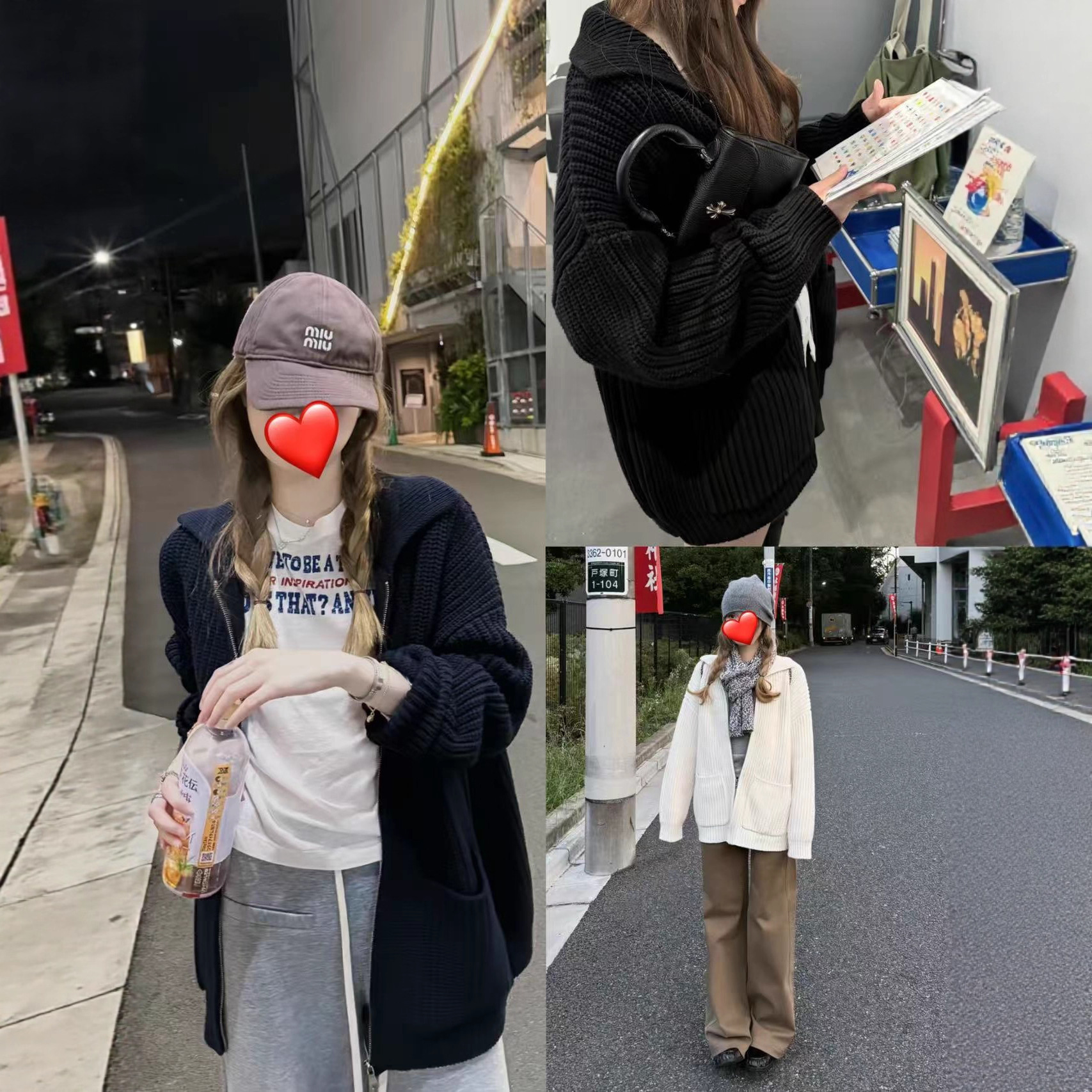 MO 糯糯 藏青色/黑色/米白拉链毛衣上衣