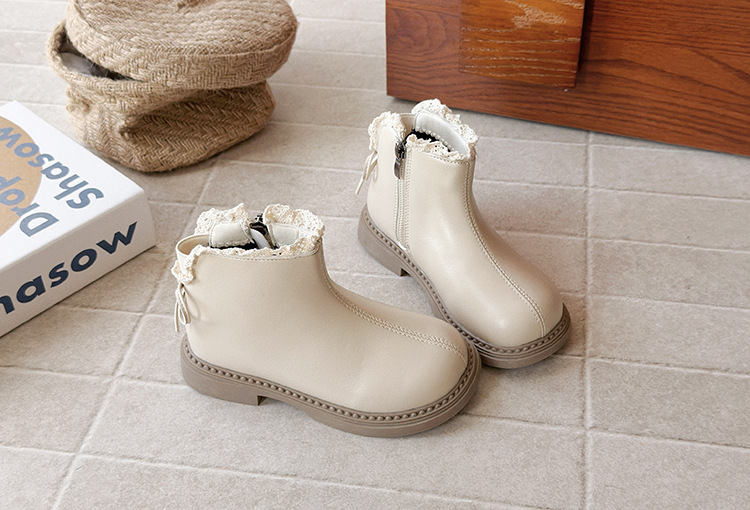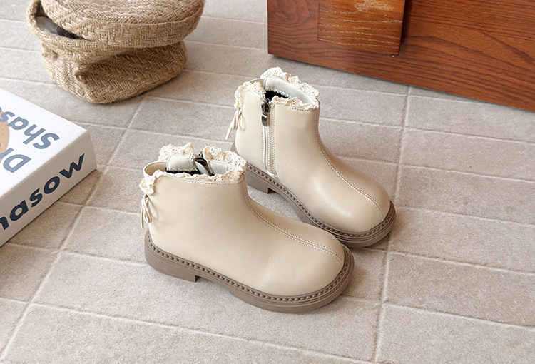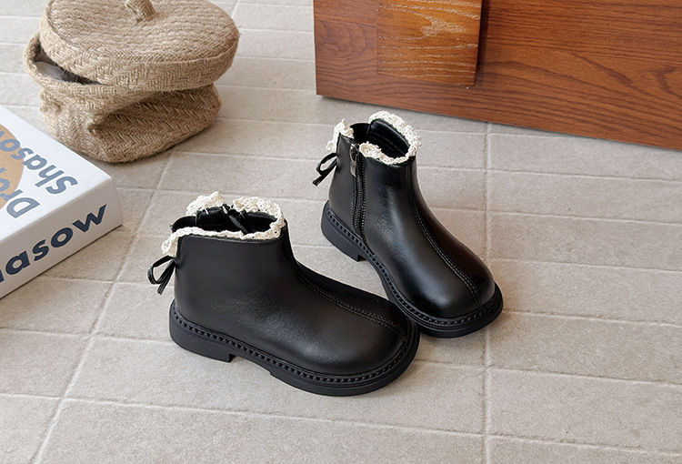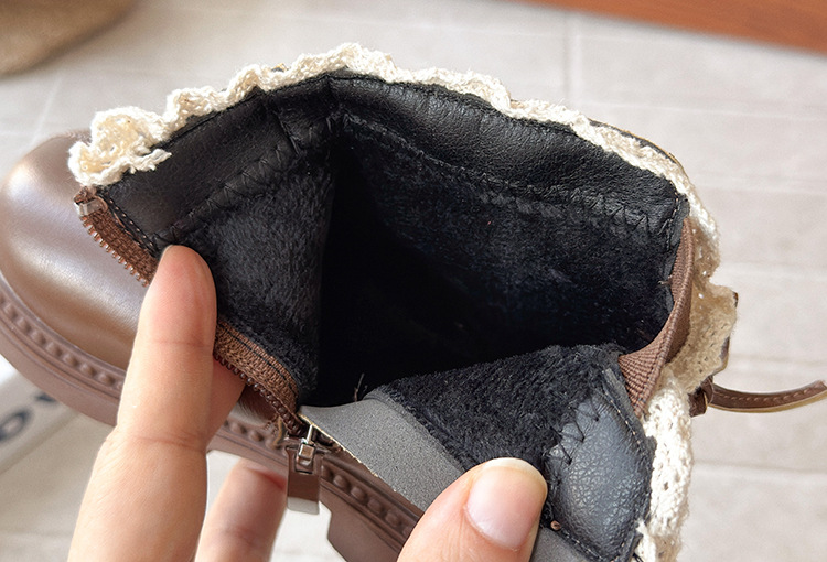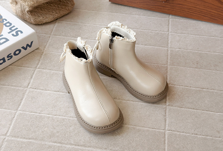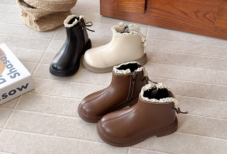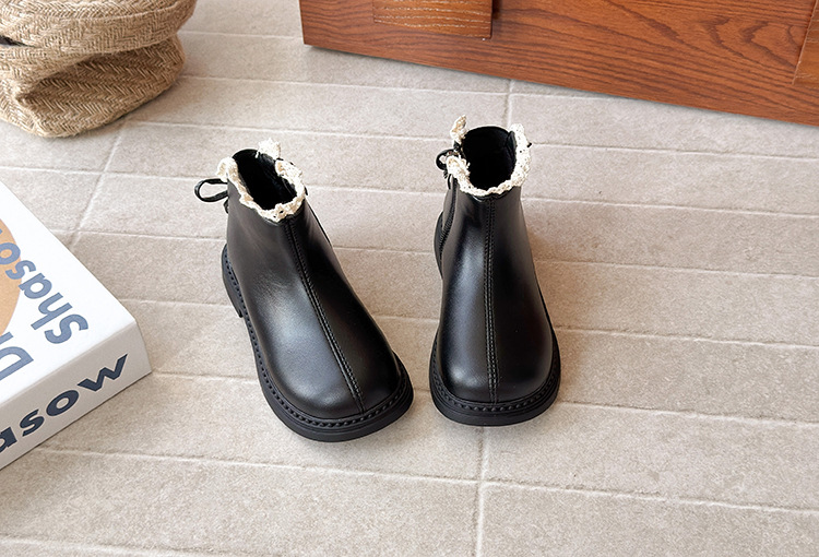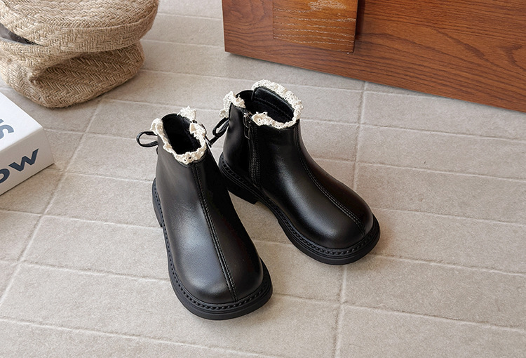 ins英伦风马丁靴2025年秋冬季新款女童蕾丝花边皮靴软底加绒短靴