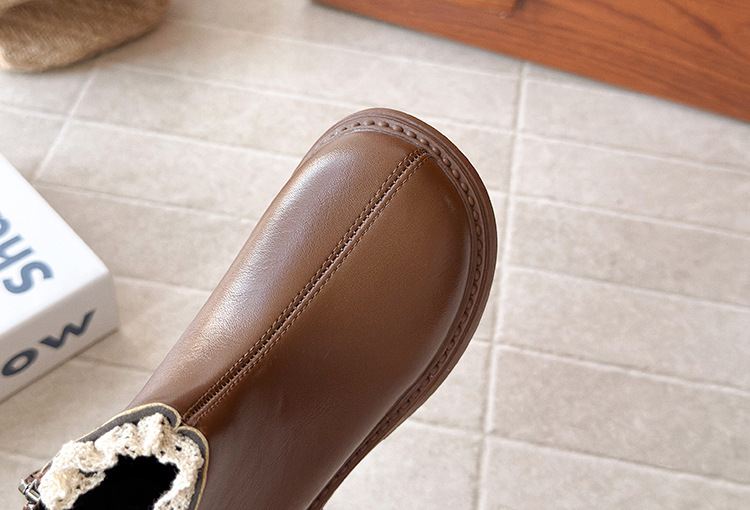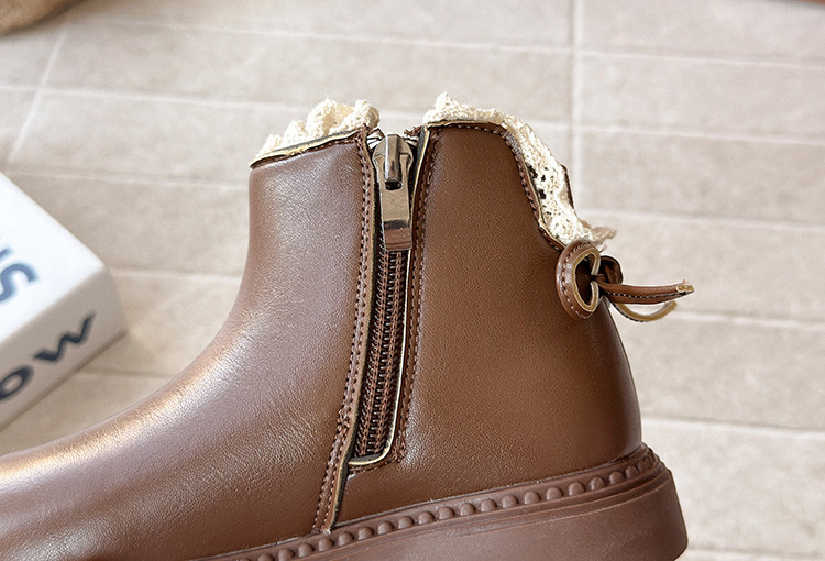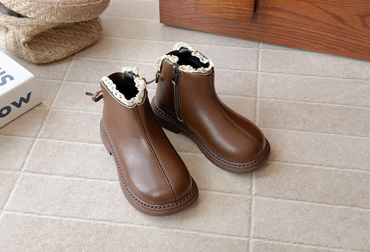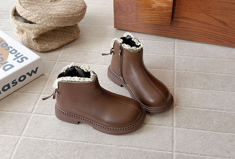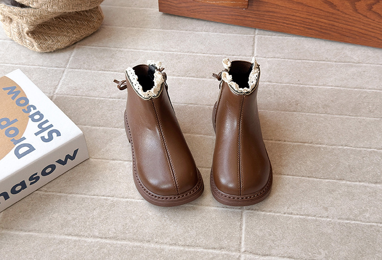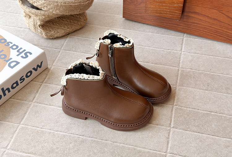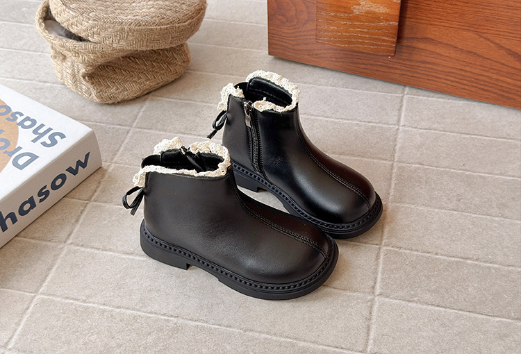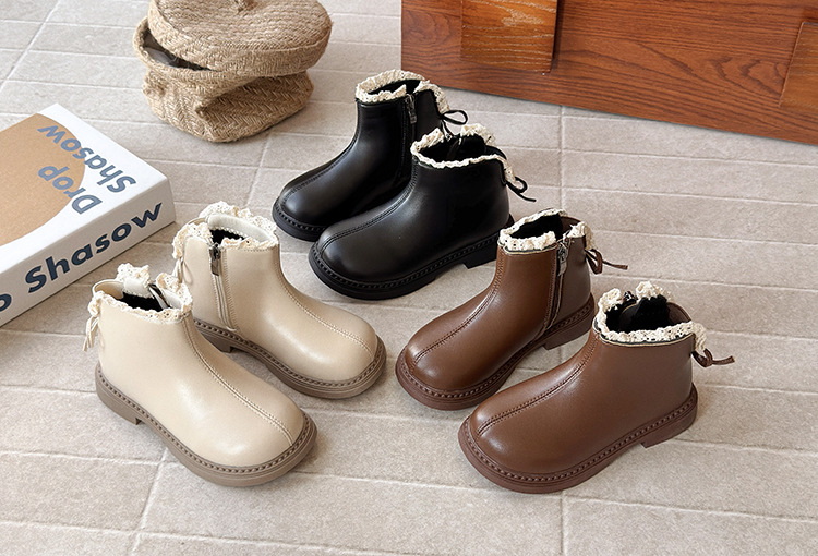 ins英伦风马丁靴2025年秋冬季新款女童蕾丝花边皮靴软底加绒短靴