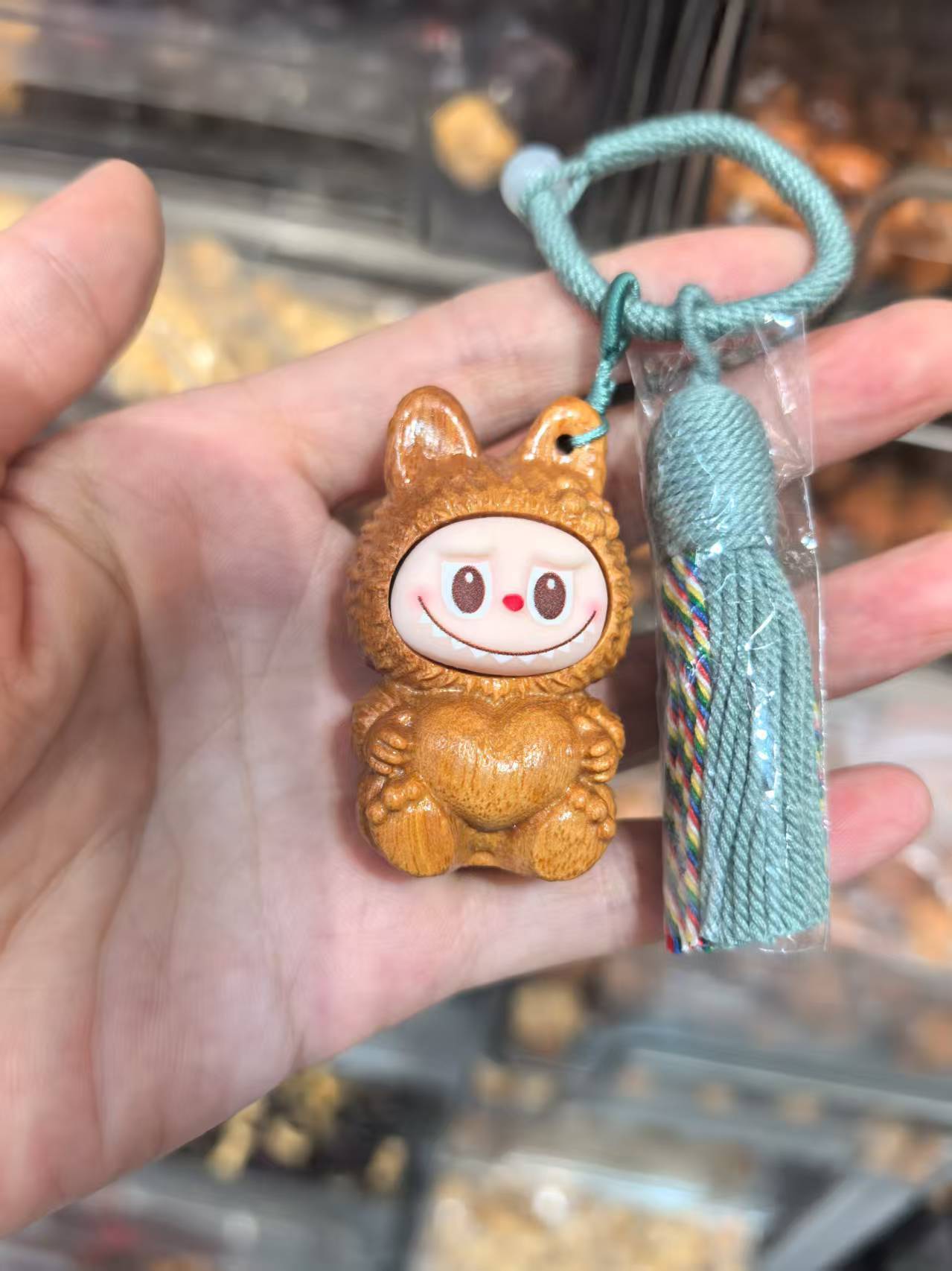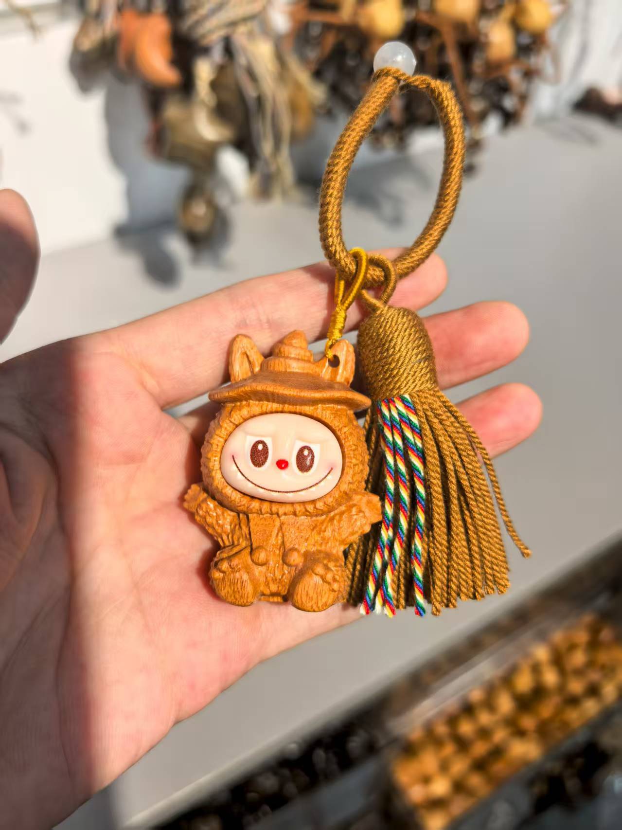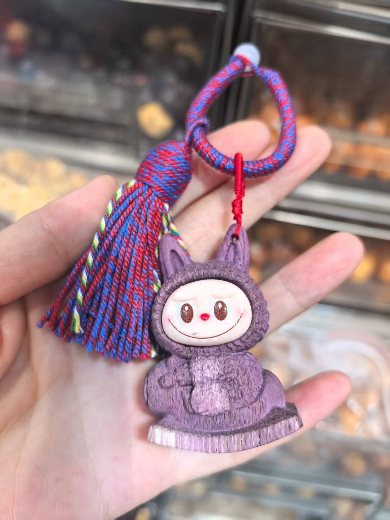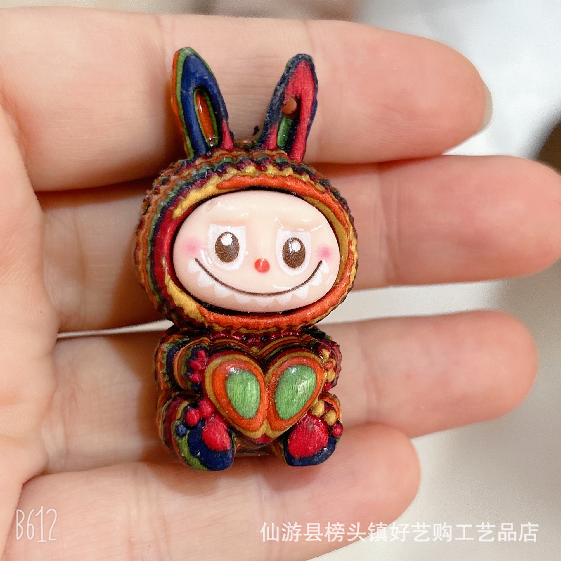 金檀木拉布布公仔可爱手机挂件彩虹潮玩手办木艺治愈系生日礼物