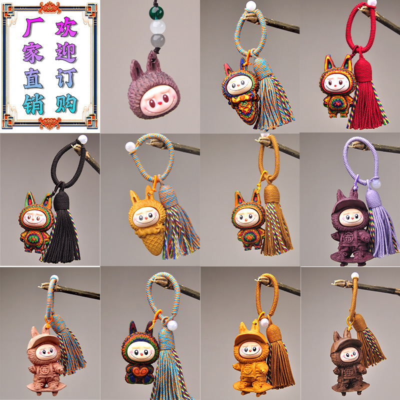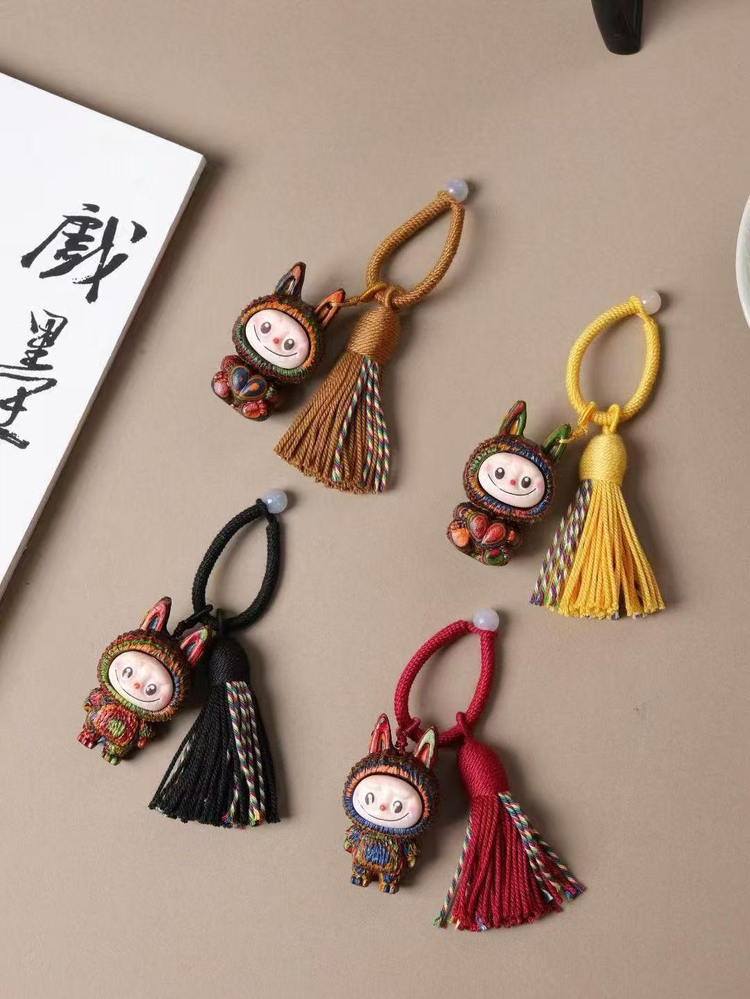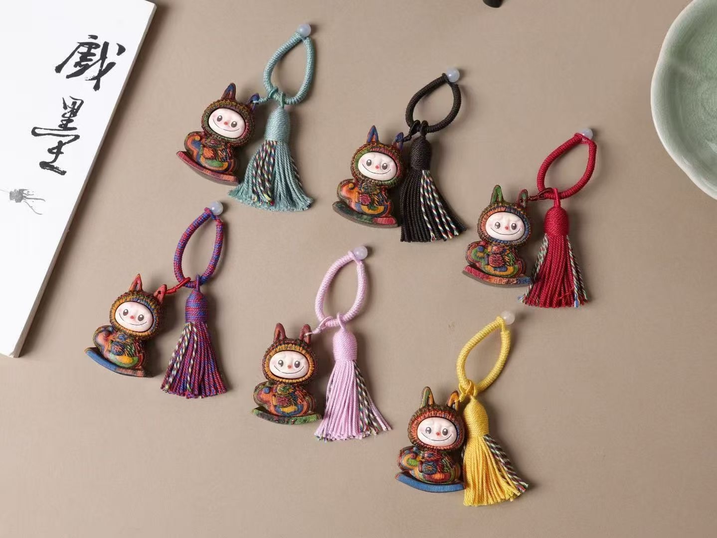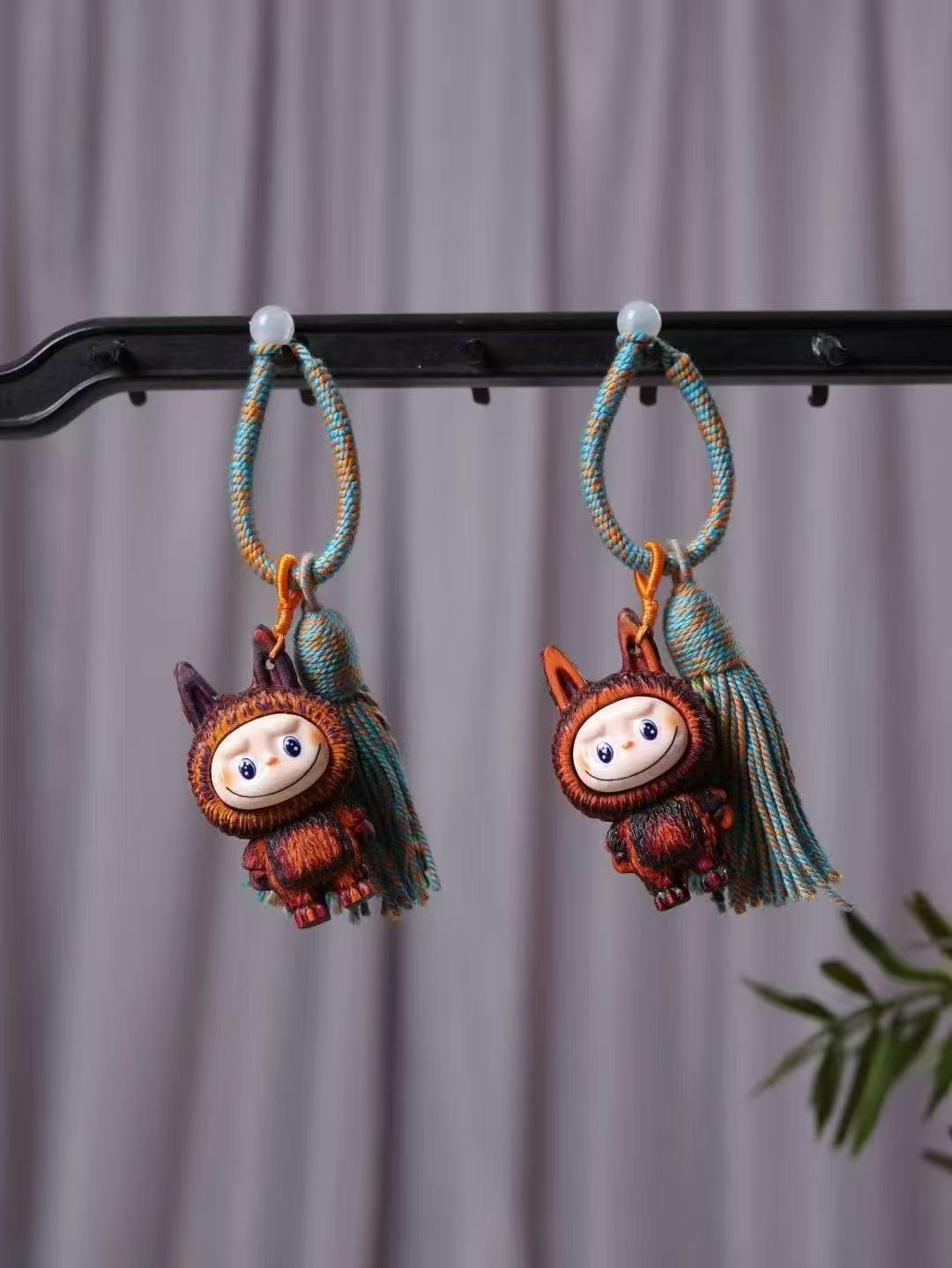 金檀木拉布布公仔可爱手机挂件彩虹潮玩手办木艺治愈系生日礼物
