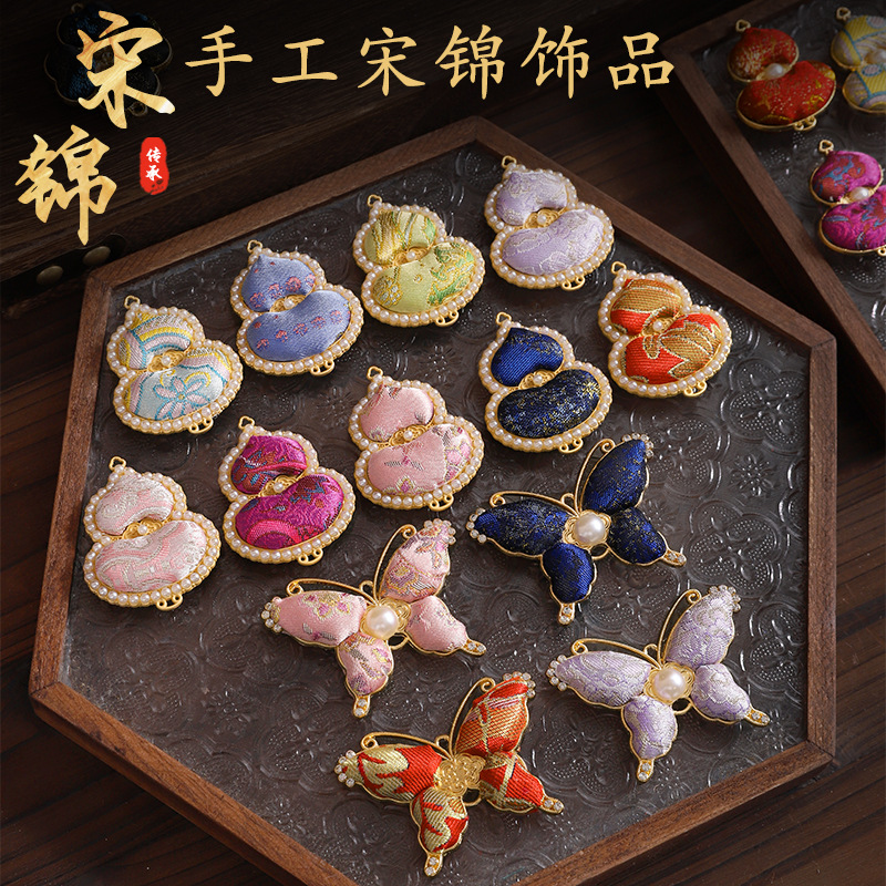 仿宋锦葫芦底胚成品手工DIY蝴蝶吊坠配件成品新年沙龙活动礼品