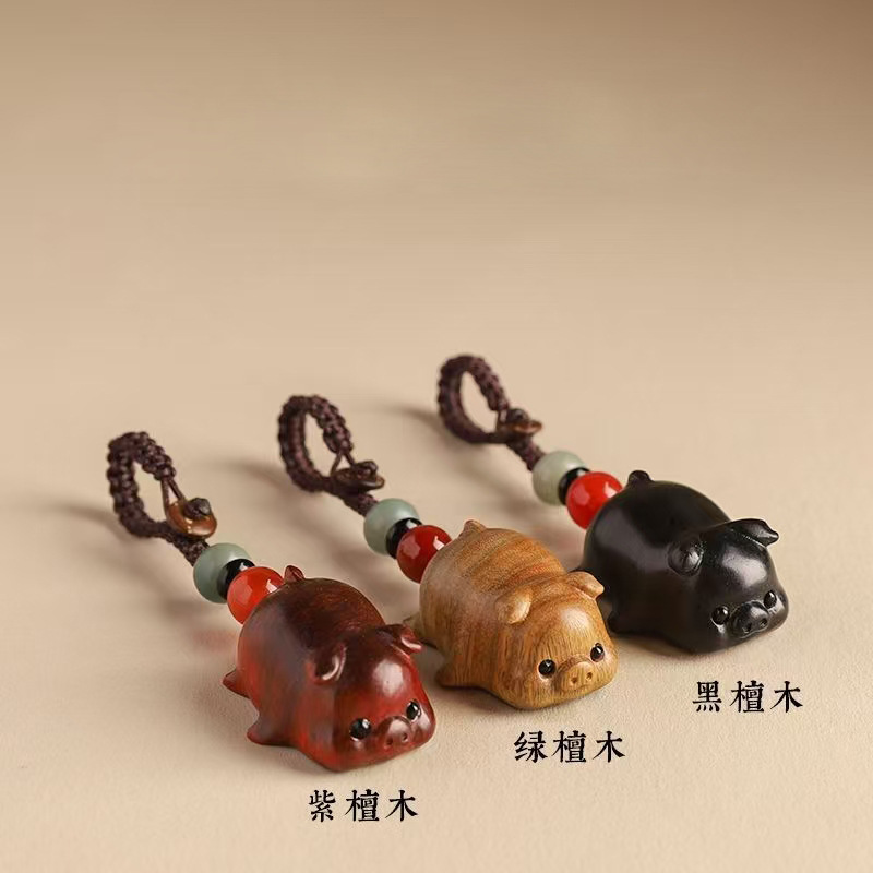 新品檀木子豚キーホルダーストラップ自動車キーペンダントペンダント緑檀紫檀黒檀木製アクセサリー