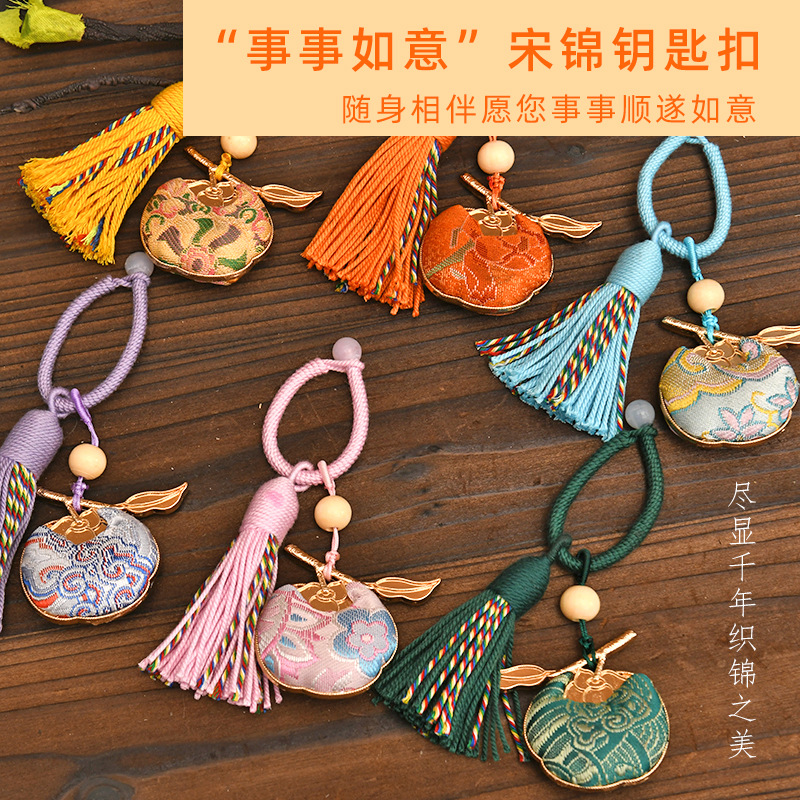 手工宋锦挂件柿柿如意钥匙扣材料包配件diy吊坠礼物摆地摊小商品