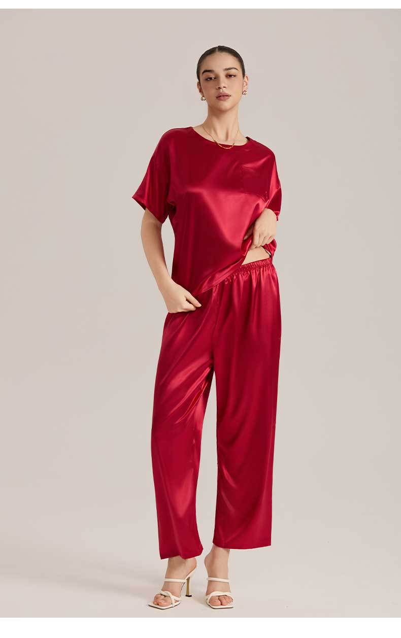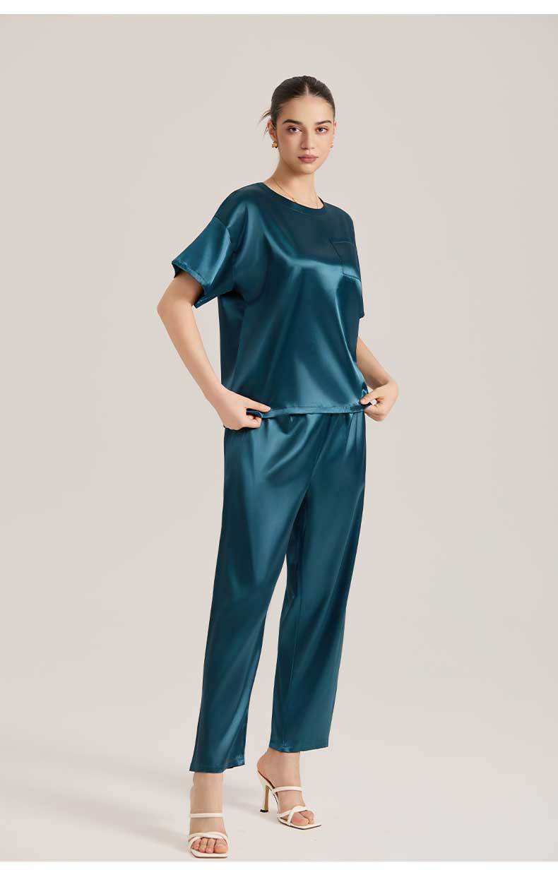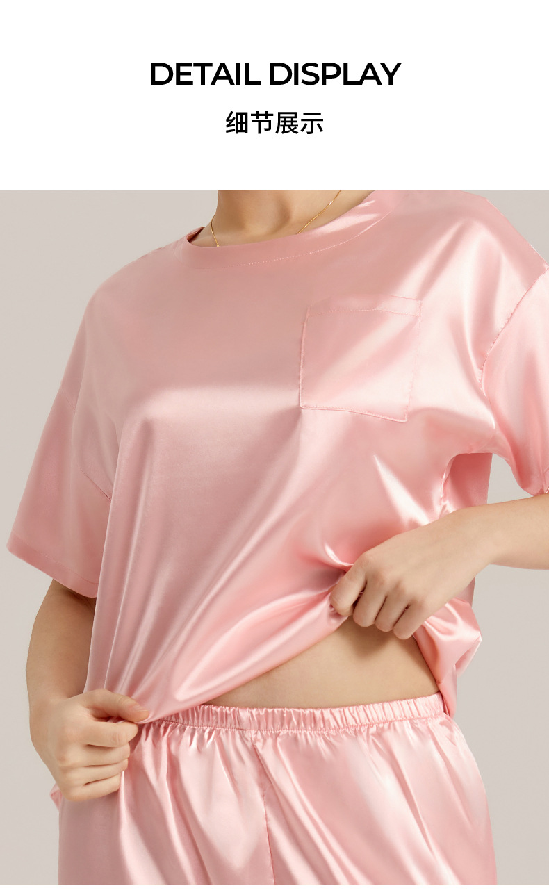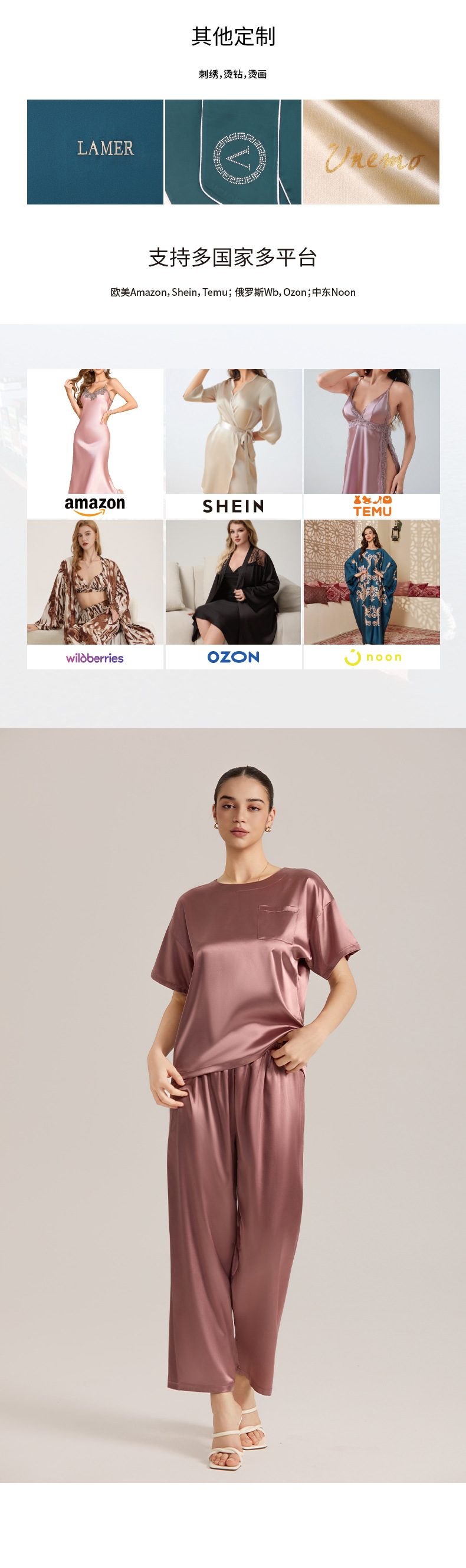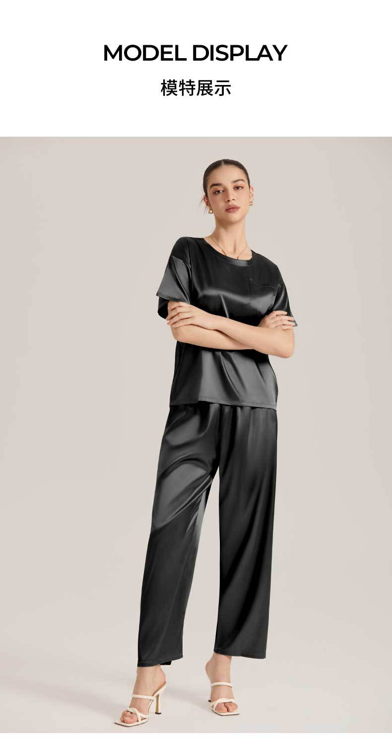 亚马逊冰丝绸睡衣女士夏季短袖长裤款式家居服宽松休闲套装TZ3147