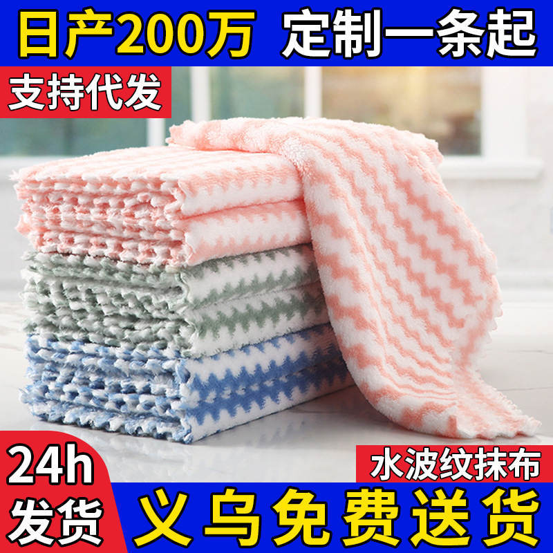 コーラルフリースふきん キッチン用 厚手 吸水性抜群 毛抜けなし カチオンふきん 油汚れ落とし 食器洗いタオル 水波模様ふきん