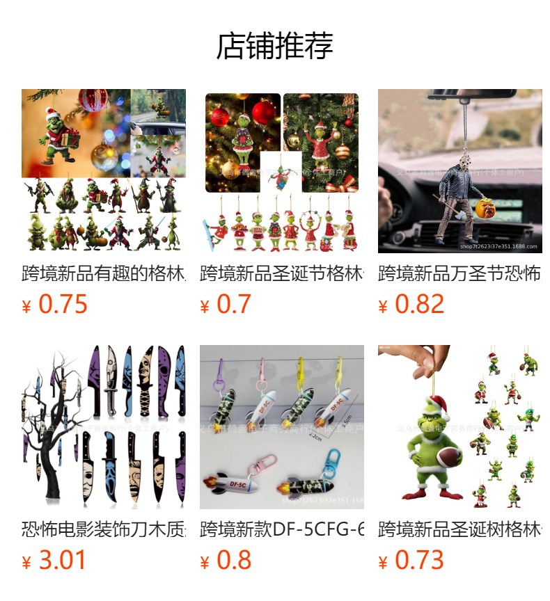 跨境新款圣诞节圣诞树装饰品挂件 格林奇卡通人物橱窗亚克力挂饰