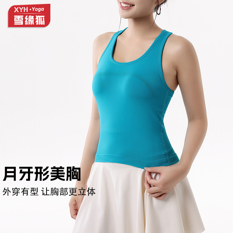 春夏防震聚拢固定一体杯运动瑜伽背心女工字美背外穿透气健身背心