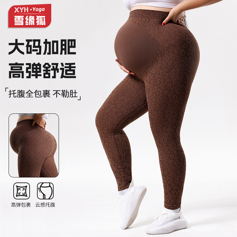 欧美豹纹印花孕妇大码瑜伽裤女修身高腰无缝孕妇打底裤紧身孕妇裤