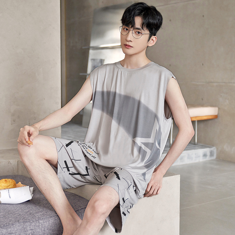 メンズパジャマ夏モーダル薄型ノースリーブベストショーツアイスシルバーアウターウェアプラスファットプラスサイズメンズスーツ