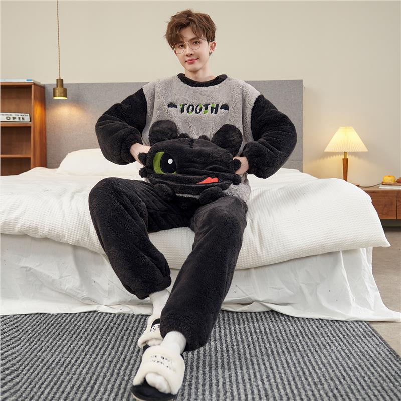 ベルベットのパジャマ青少年男性は冬にベルベットのかわいいアニメスーツを厚くして冬に保温している家庭服を着ている