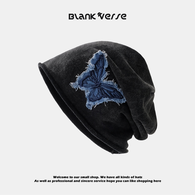 秋冬デニム蝶柄起毛無地カールヘアハット、新中華風レトロ小顔効果パイルハット、秋冬保温