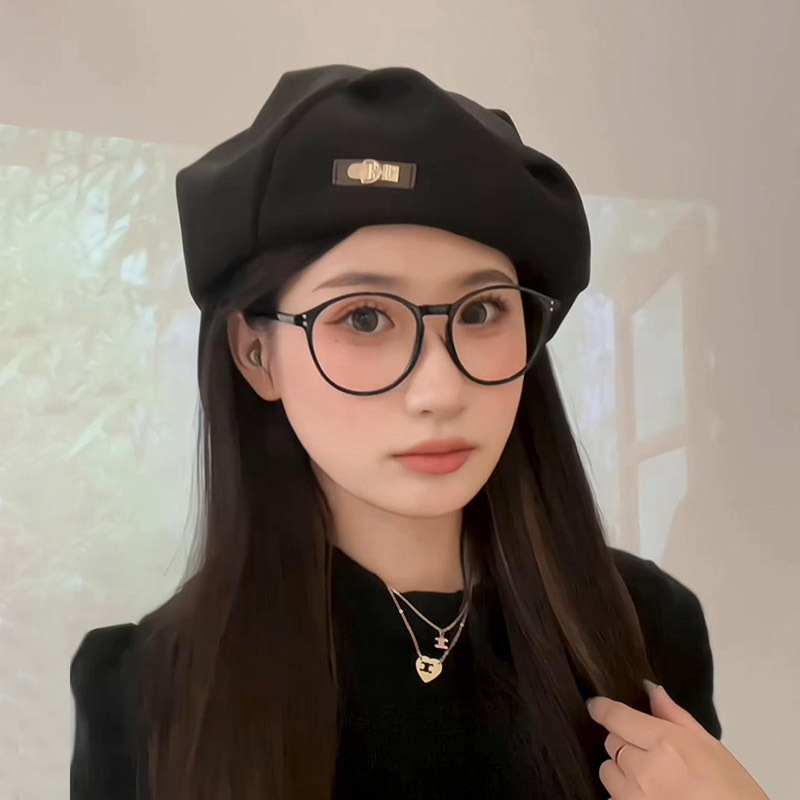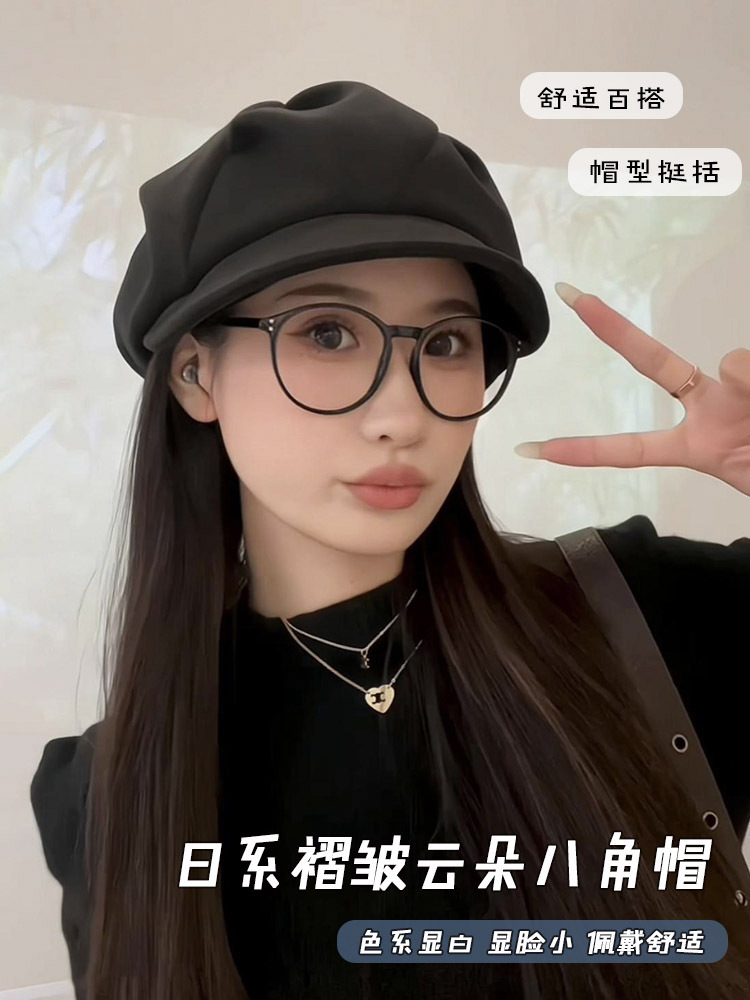 高级感春秋鸭舌帽女日系黑色休闲复古画家贝雷帽显脸小云朵八角帽