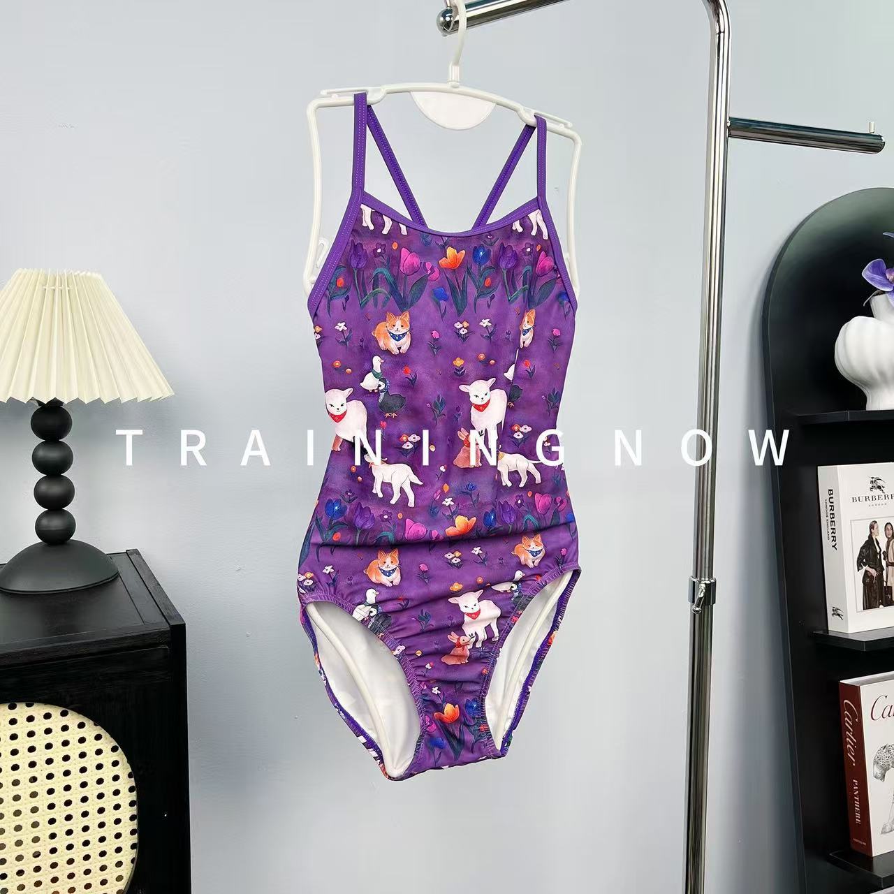 单层紫小羊连体专业竞速泳衣女新款游泳馆运动专用泳装可爱游泳衣