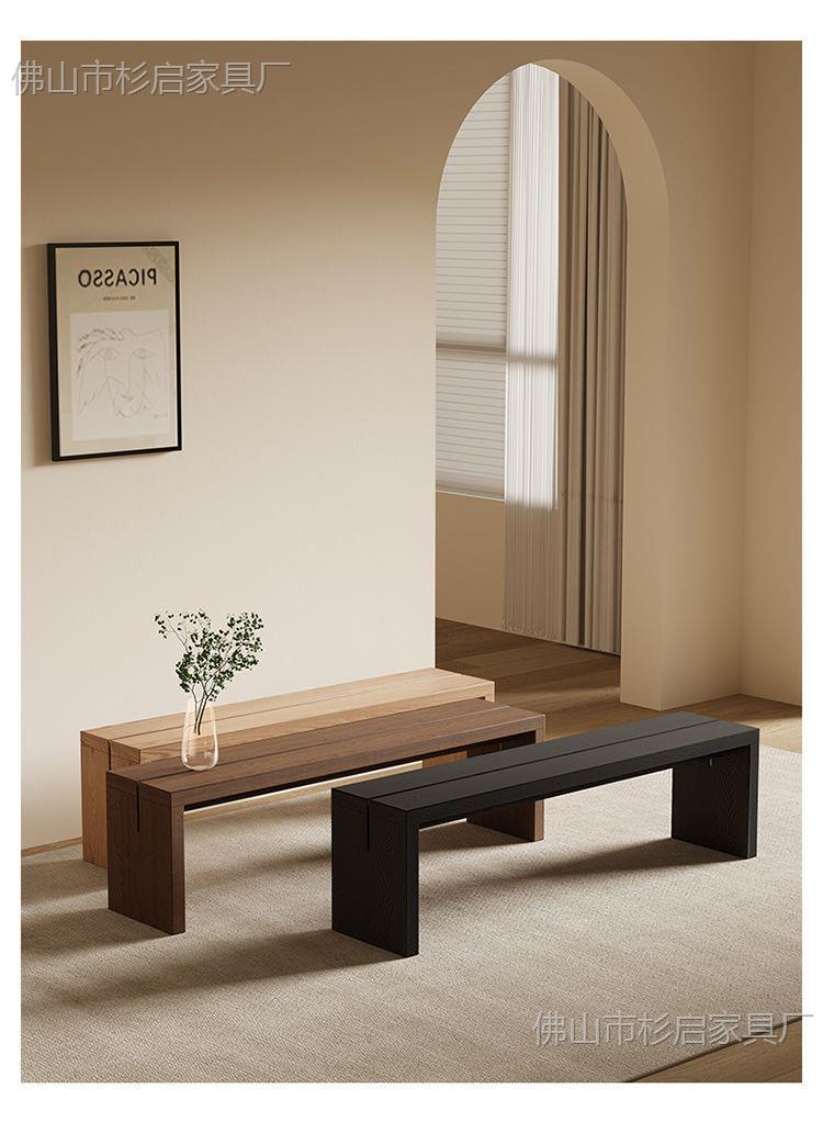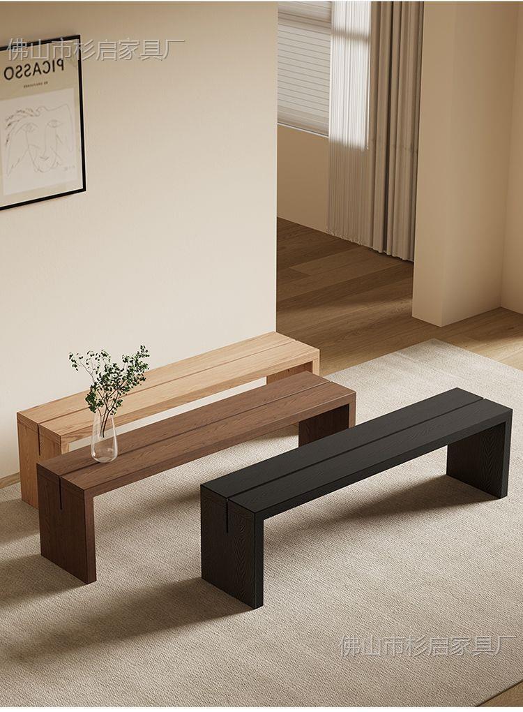 实木长条凳家用长椅胡桃色原木长凳ins风床尾凳进门换鞋凳沙发凳