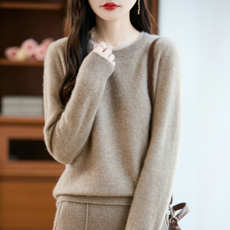 100%纯羊毛2025秋冬新款女式宽松圆领复古加厚套头打底针织衫毛衣