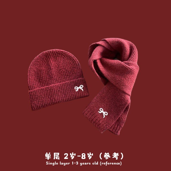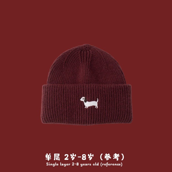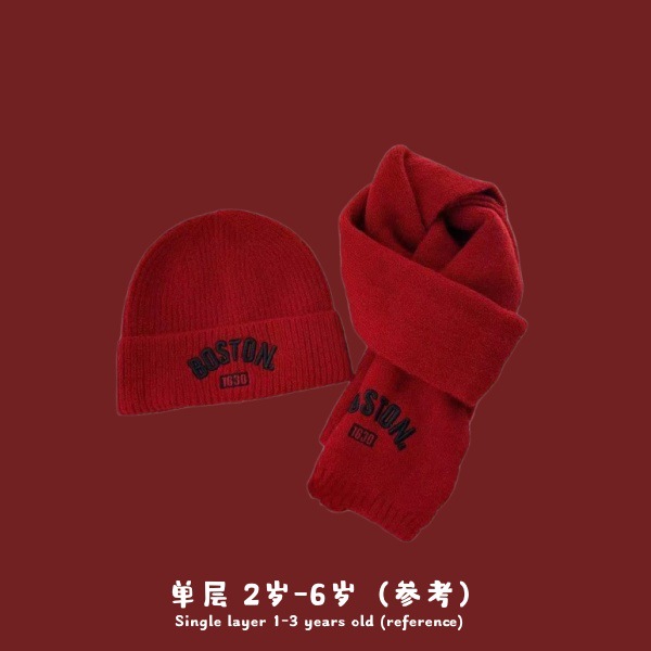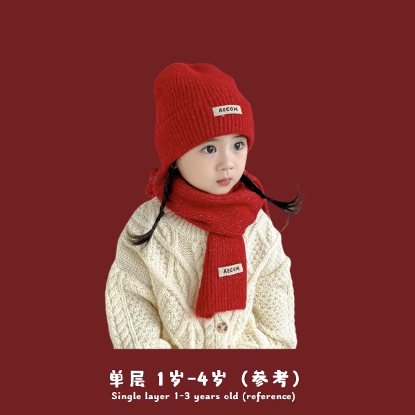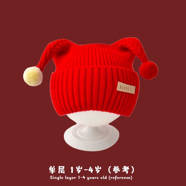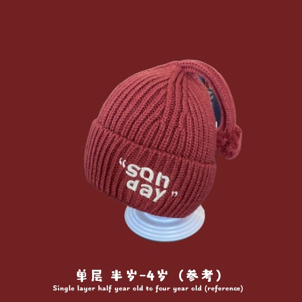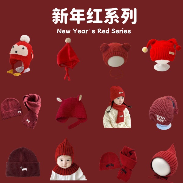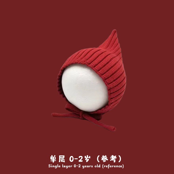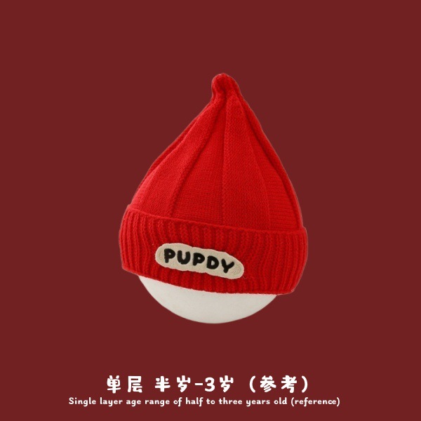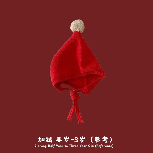 冬季儿童帽子秋冬红色系新年针织帽幼儿毛线帽男女宝宝过年套头帽