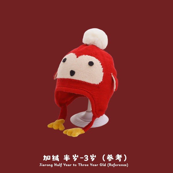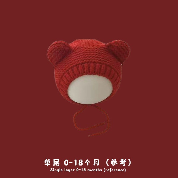 新年红色宝宝毛线帽秋冬季保暖毛线帽男女童可爱抓周套头针织帽萌