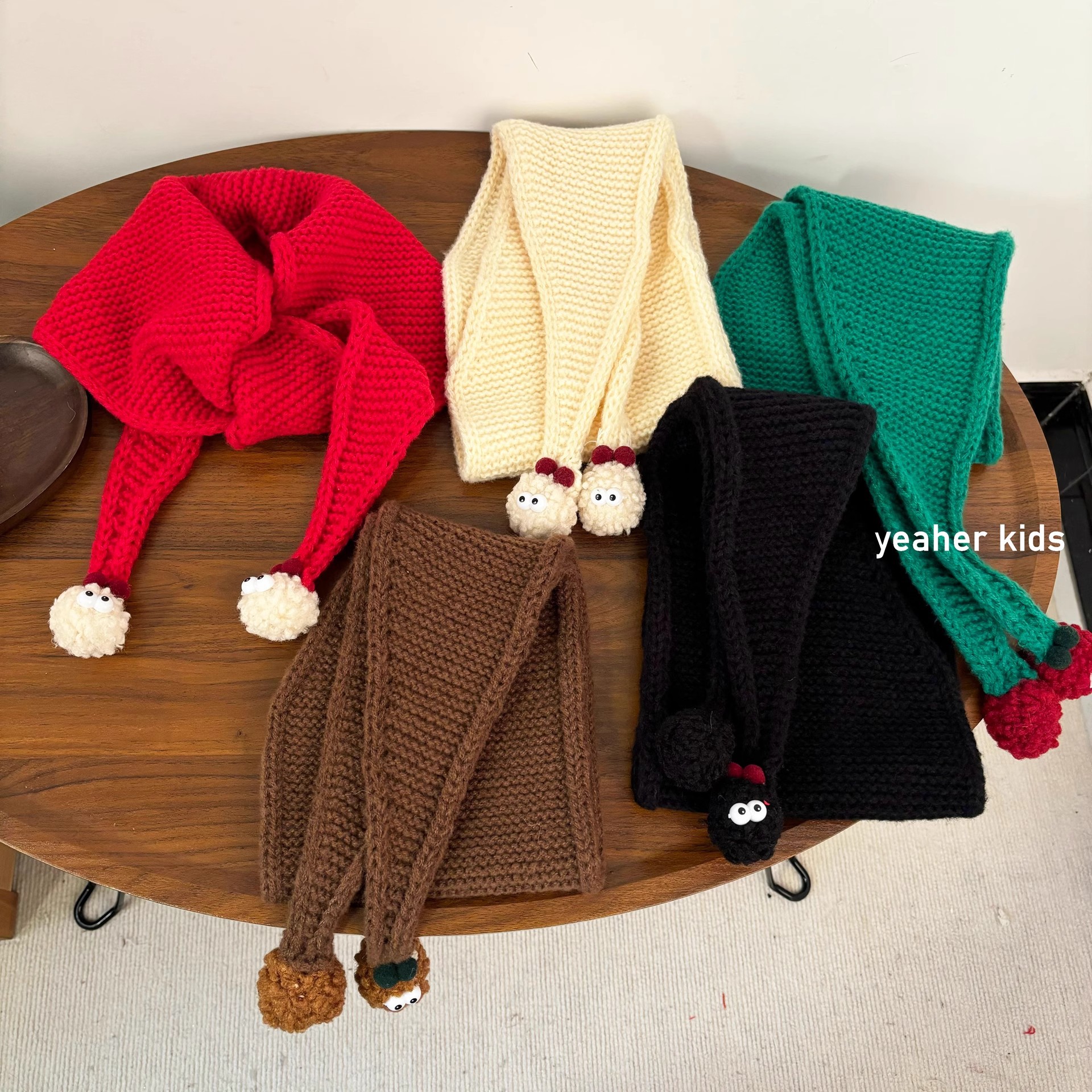 ins可爱毛球儿童针织围巾冬防寒宝宝毛线围脖男女婴幼儿保暖围脖