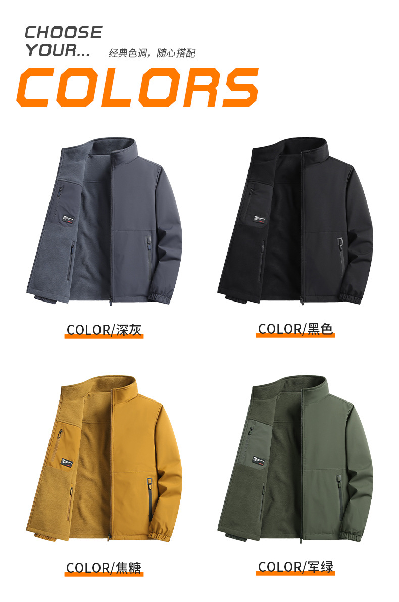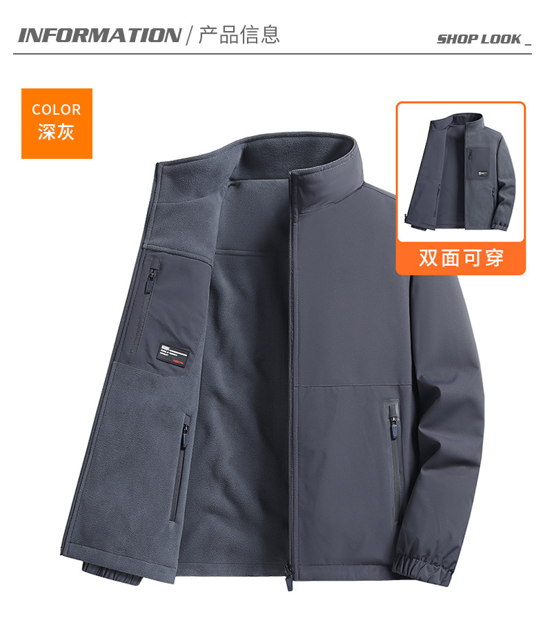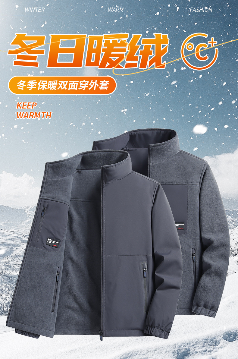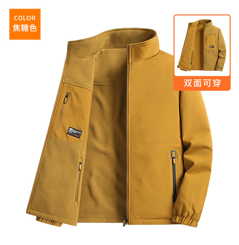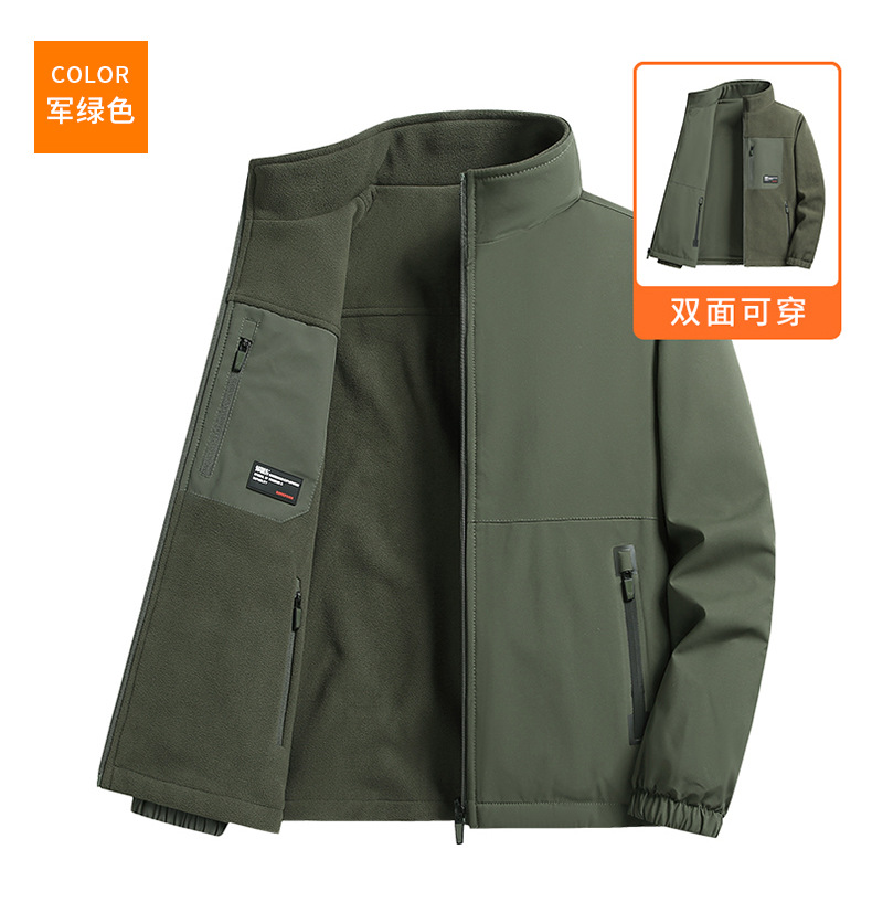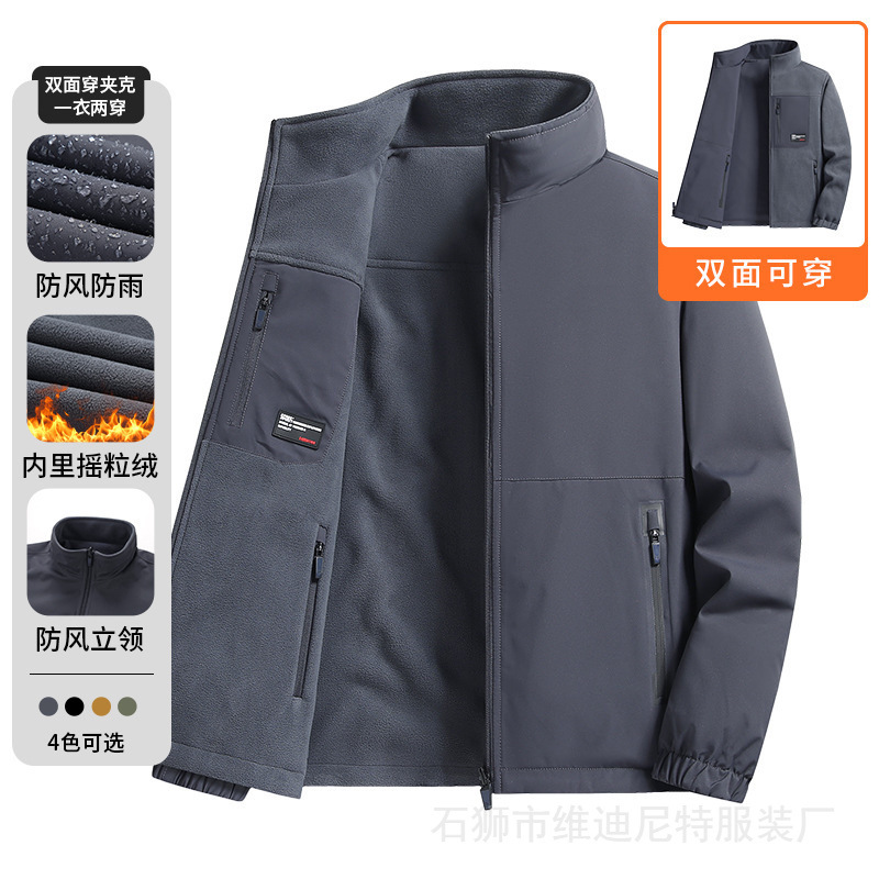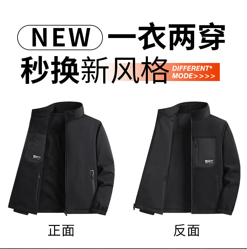 秋冬季新款男士双面穿夹克男户外立领加绒保暖大码摇粒绒外套男装