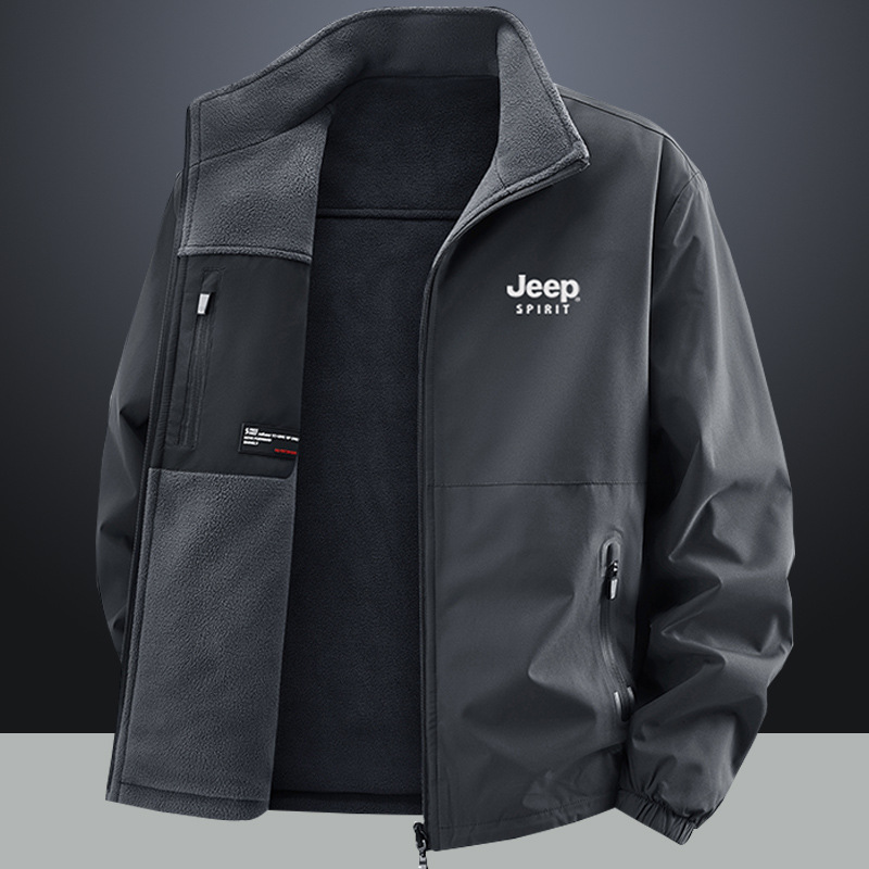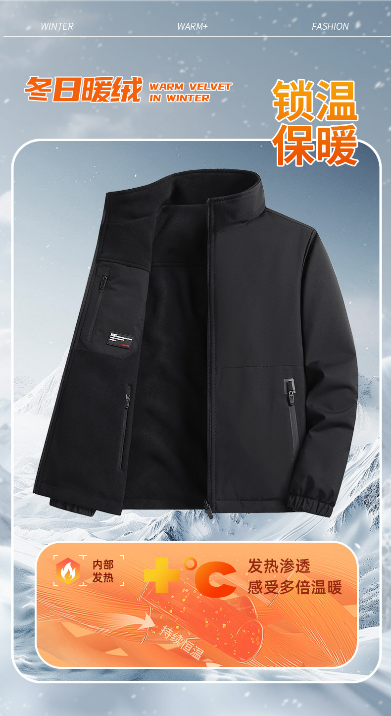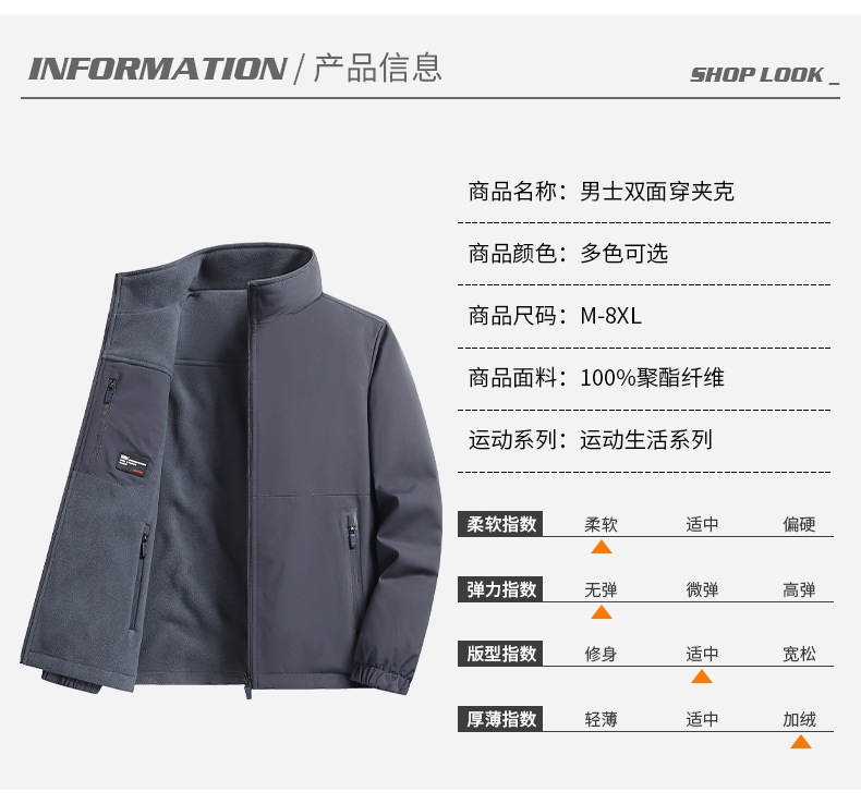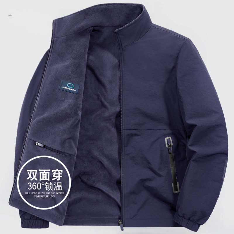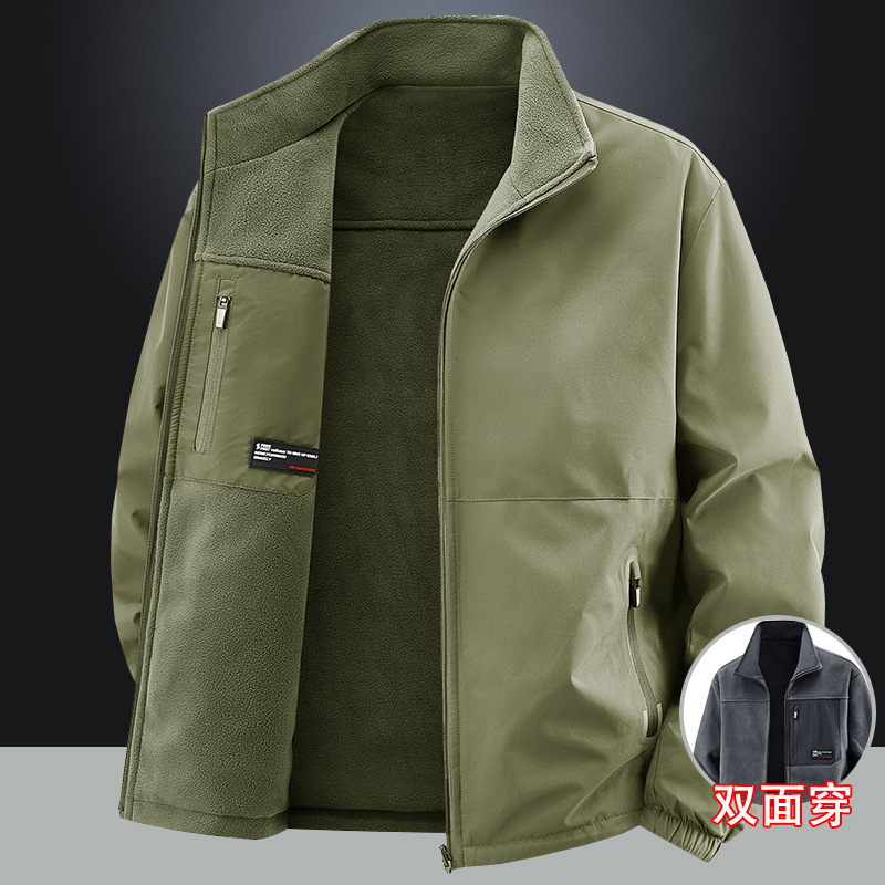 双面穿夹克男秋冬新款立领加厚防风保暖时尚户外爸爸装摇粒绒外套