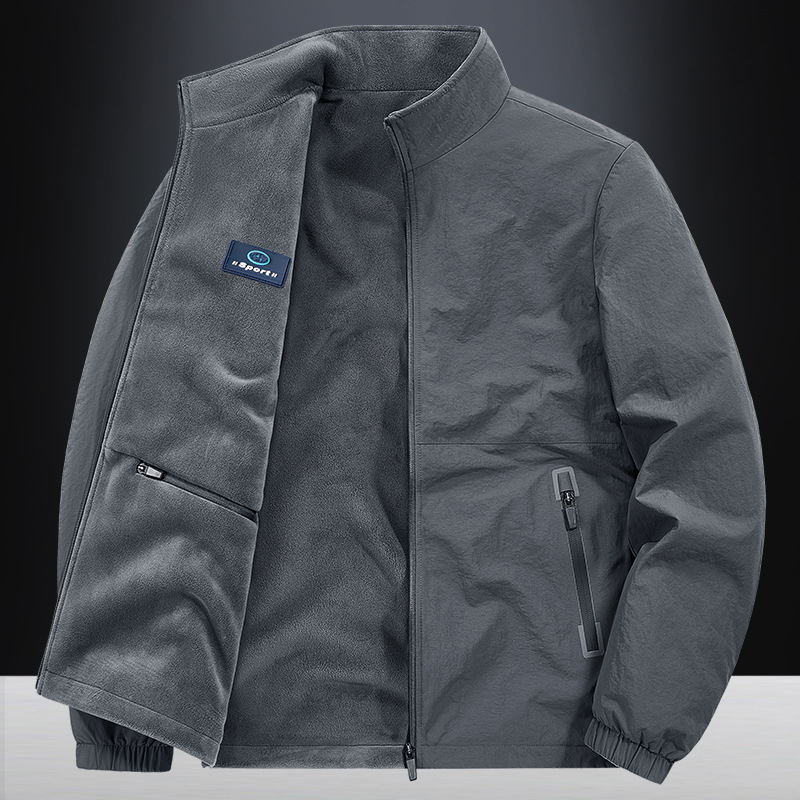 大码双面可穿摇粒绒夹克男潮流外套男秋冬防风保暖立领加绒男卫衣