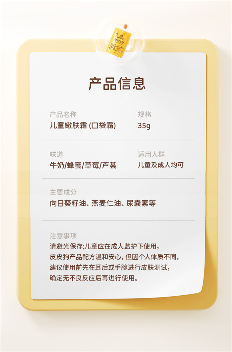 皮皮狗儿童面霜滋润保湿霜润肤乳婴儿保湿霜袋装宝宝护肤霜补充装