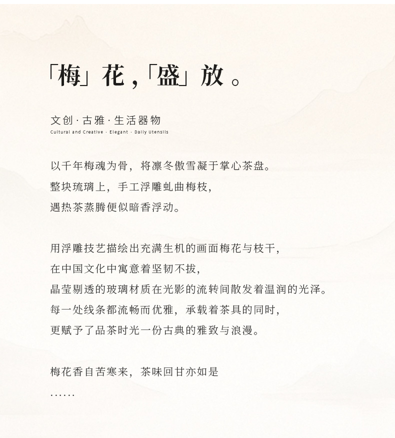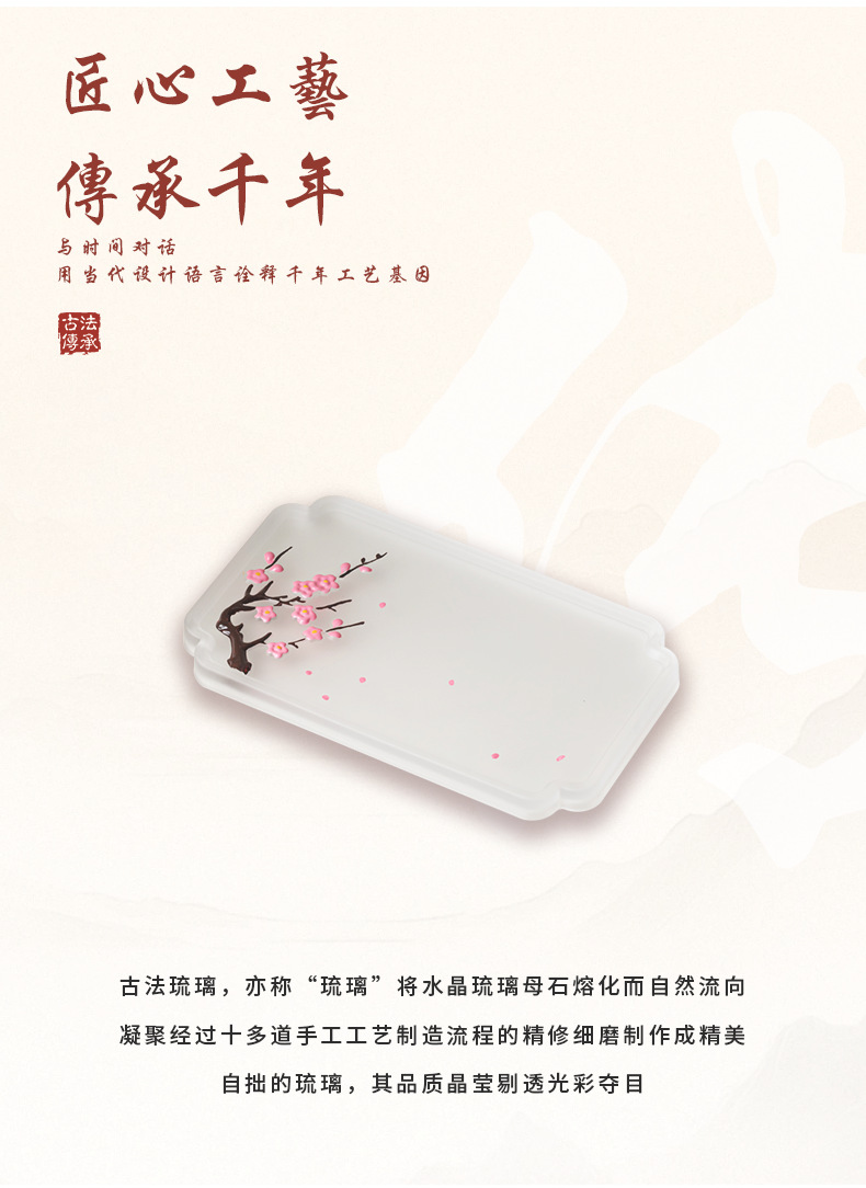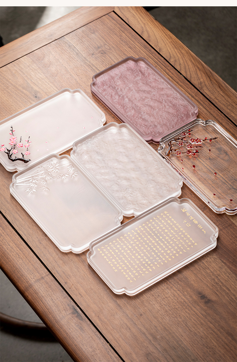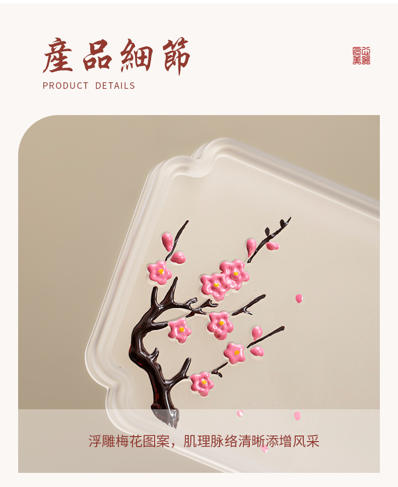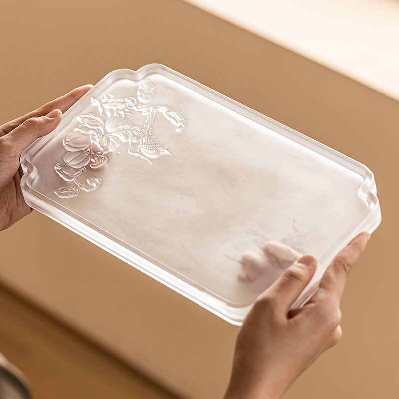 流云璃彩手绘梅花玻璃茶盘家用小型干泡盘中式简约茶台茶具隔热盘