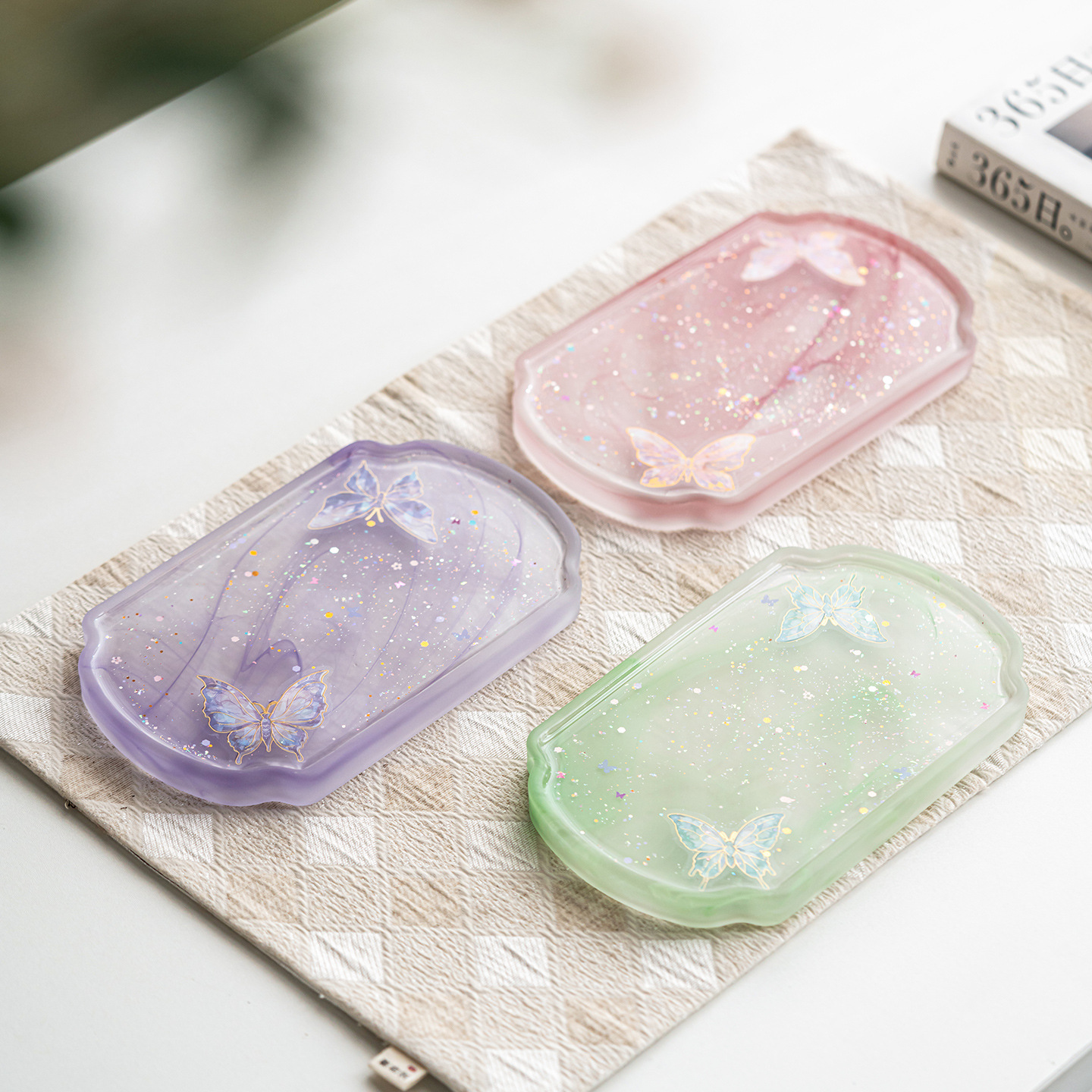 中式琉璃茶盘小托盘蝴蝶干泡盘功夫茶具茶托盘壶承家用户外茶台