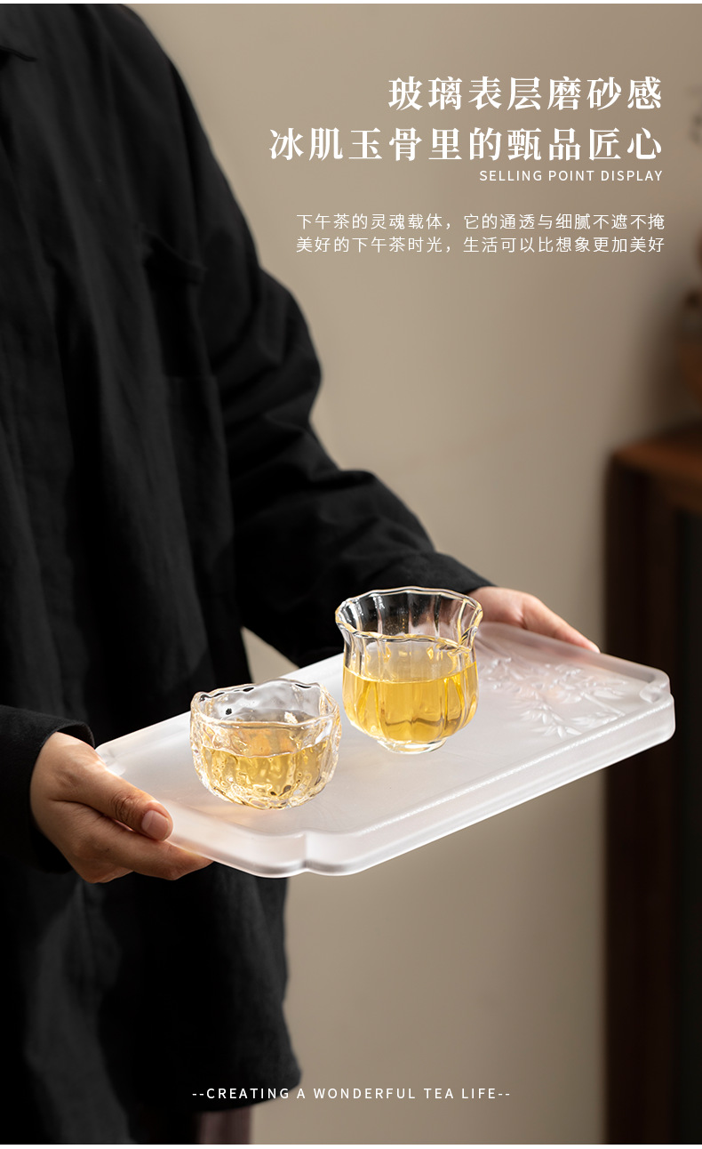 軽奢雲霧海棠ガラス茶盤、創作水墨釉薬乾泡台、家庭用中華風湯呑み、小茶托、茶器