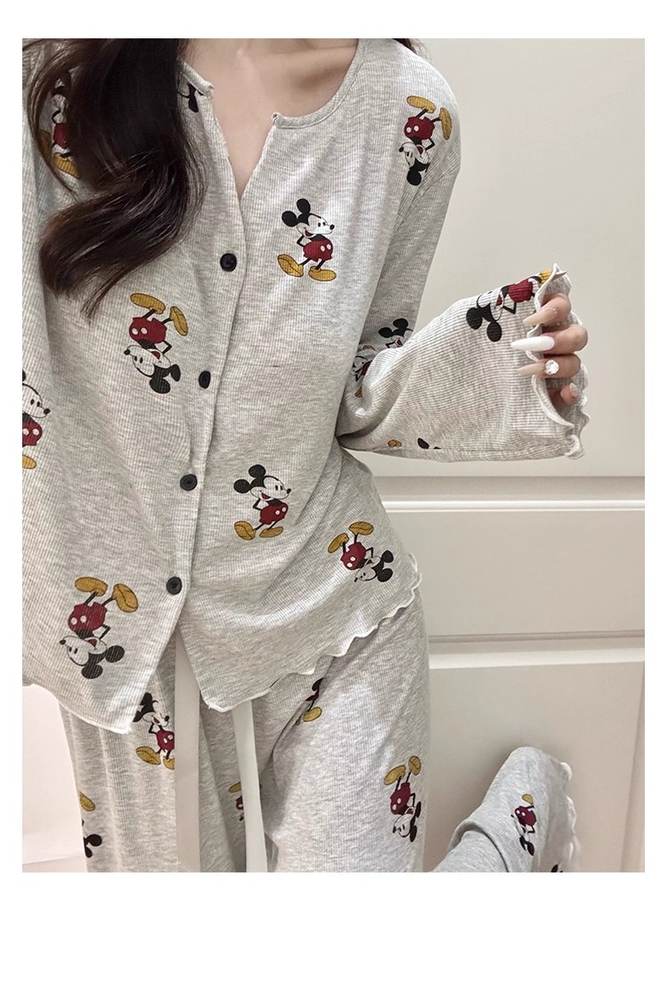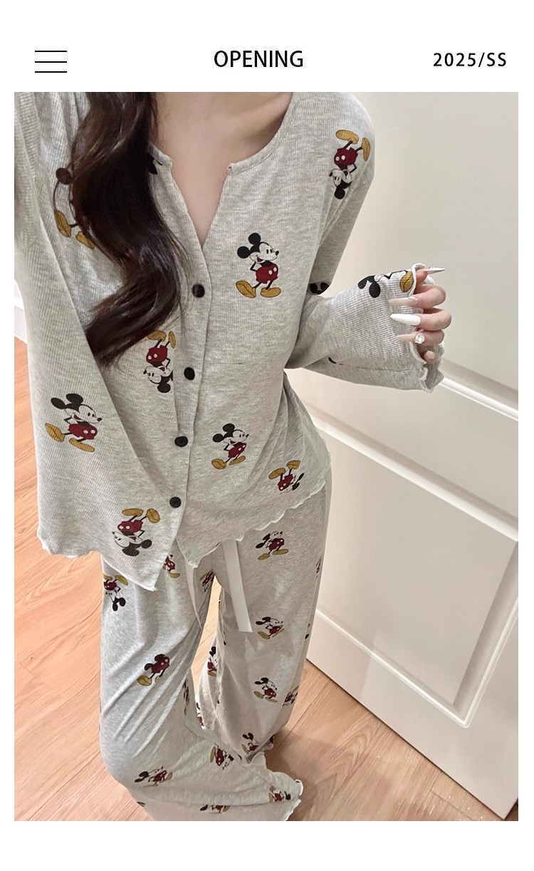 かわいいアニメミッキーパジャマ女春秋長袖2025新型太ったmm大サイズ200斤の家庭服セット