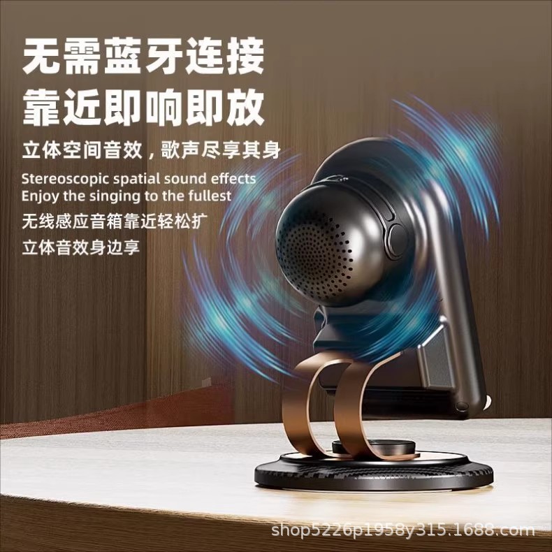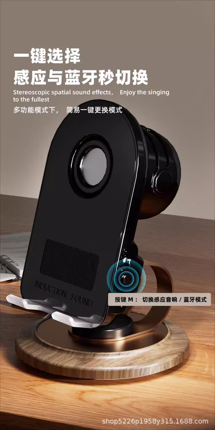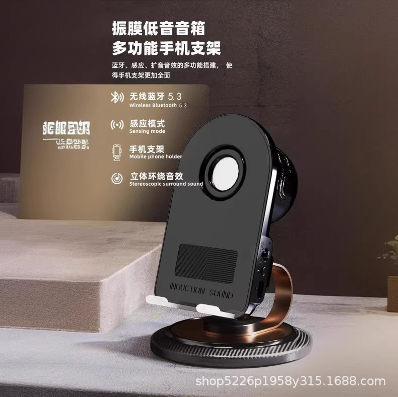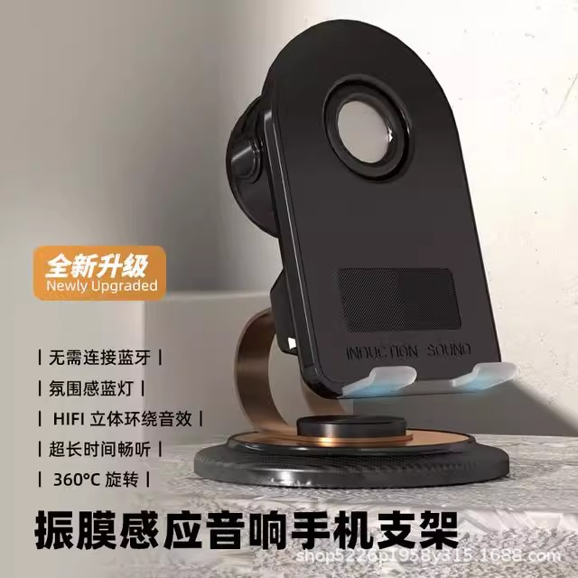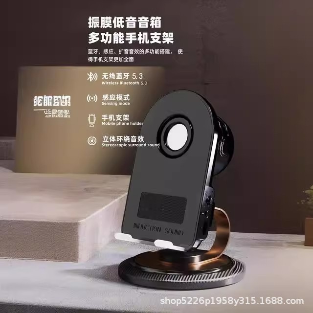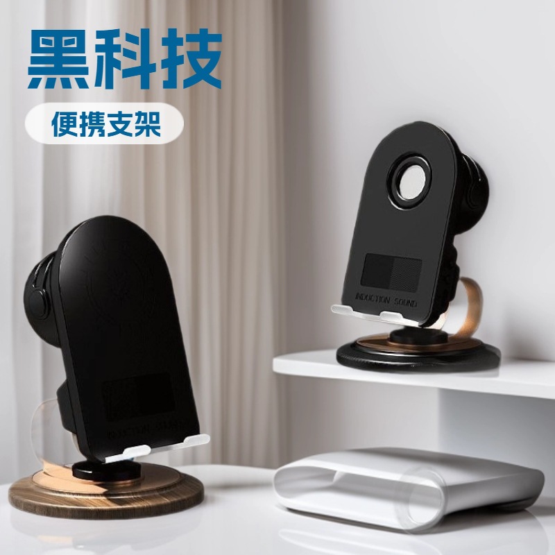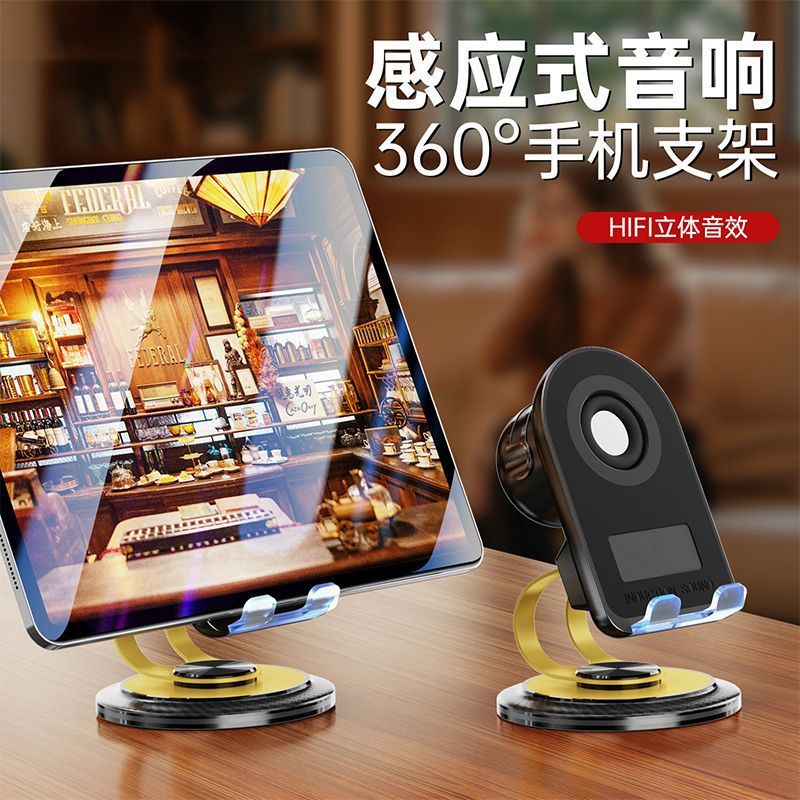 跨境优选智能无线感应音响手机支架一体360°桌面旋转便携扩音器