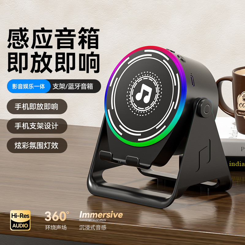 新款创意智能感应音箱手机支架一体五合一多功能桌面迷你蓝牙音响