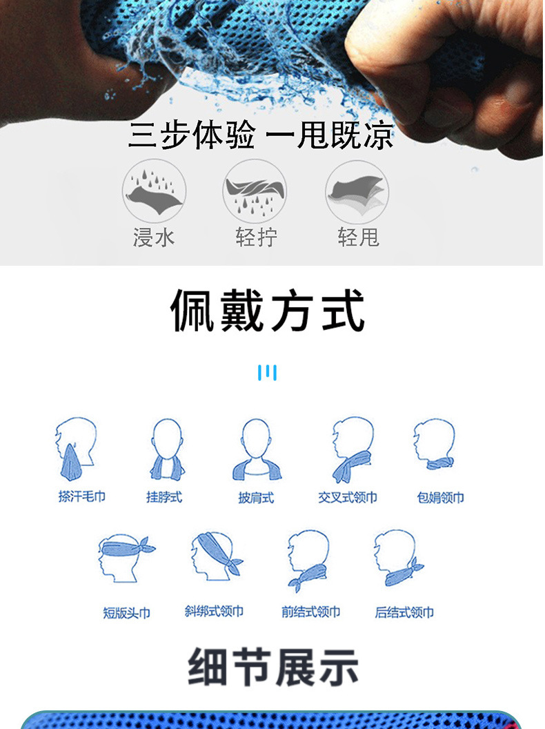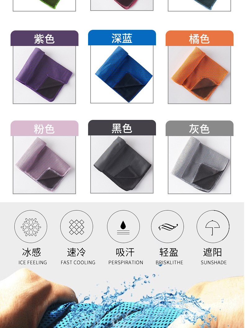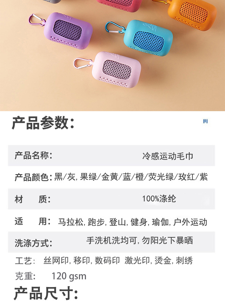 跨境冷感运动毛巾批发擦汗冰感毛巾速干冰凉巾便携式户外硅胶毛巾