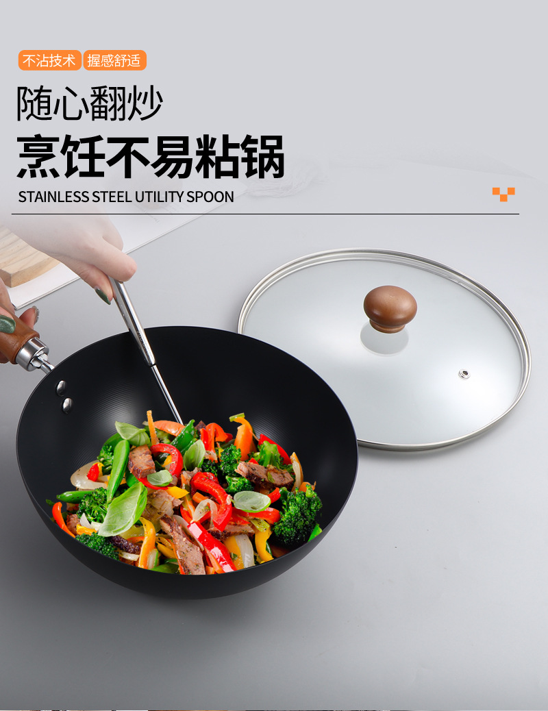 代发锤纹小炒锅铁锅正宗章丘圆形不粘锅加厚耐高温炒菜无涂层
