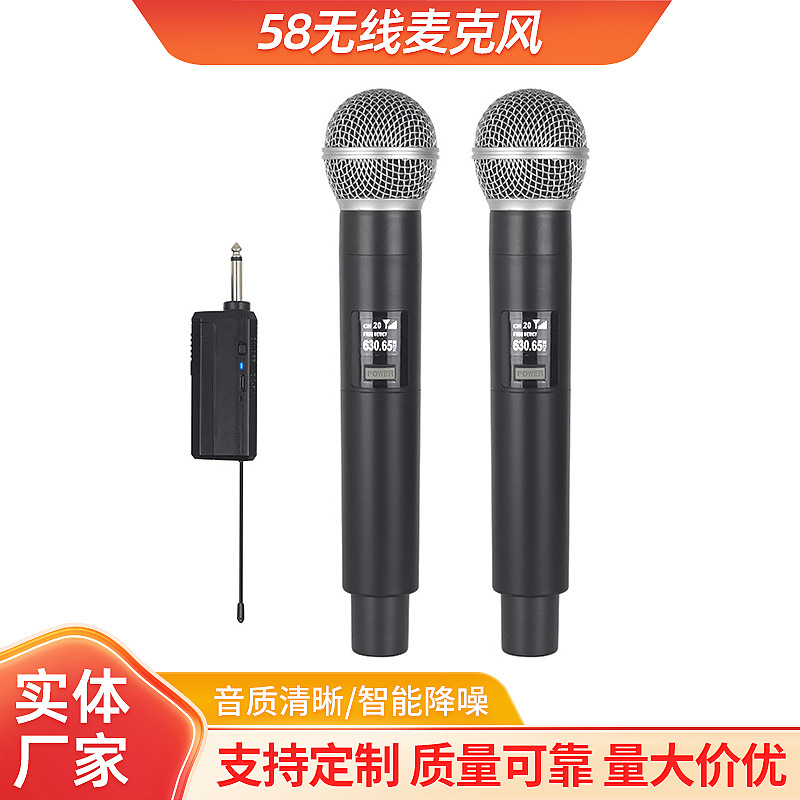 跨境无线麦克风手持动圈话筒防啸叫一拖二舞台话筒声卡直播麦克风