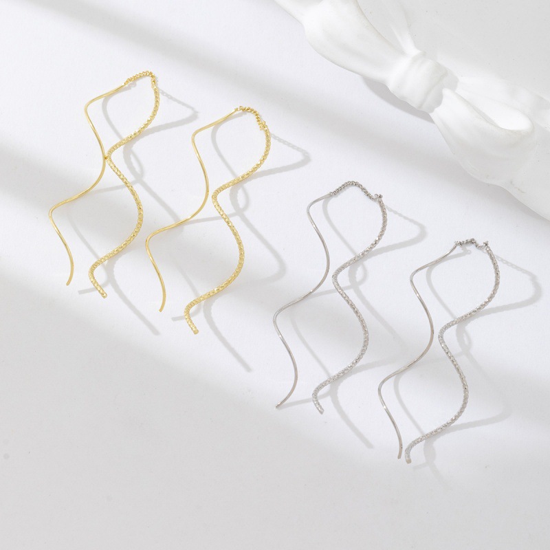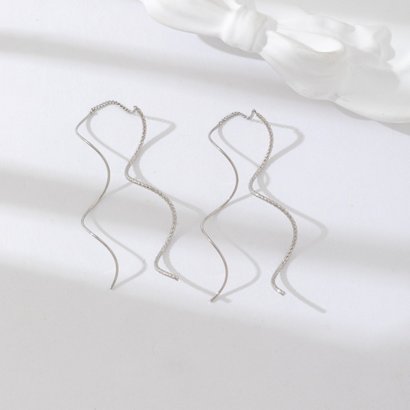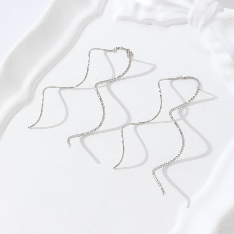 韩版新款波浪线条流苏高级感长款耳线 ins风小众气质超仙饰品女