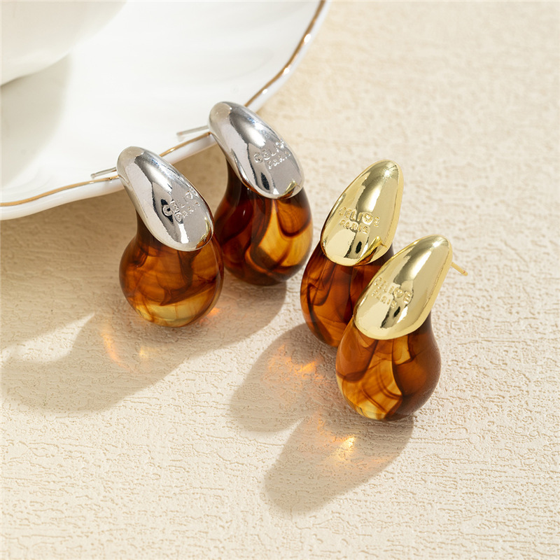 クロスボーダーレトロメイラードコーヒー色の水滴樹脂イヤリングニッチデザインハイエンド気質パーソナライズされたイヤリング