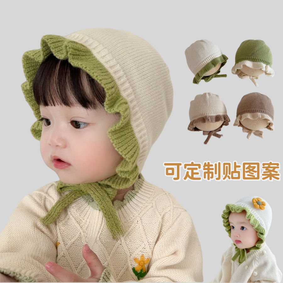 秋と冬のベビーレースウール帽子女の赤ちゃん甘い漁師帽子プリンセス韓国スタイル耳保護ニット帽子