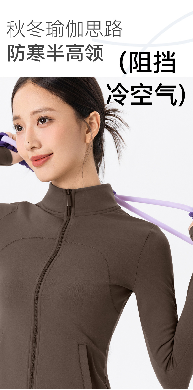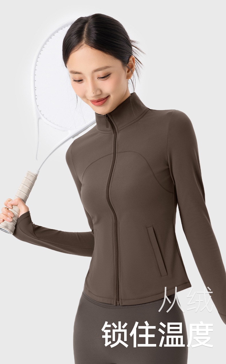 云感暖绒锁温运动外套女秋冬加厚立领修身收腰显瘦长袖瑜伽服上衣