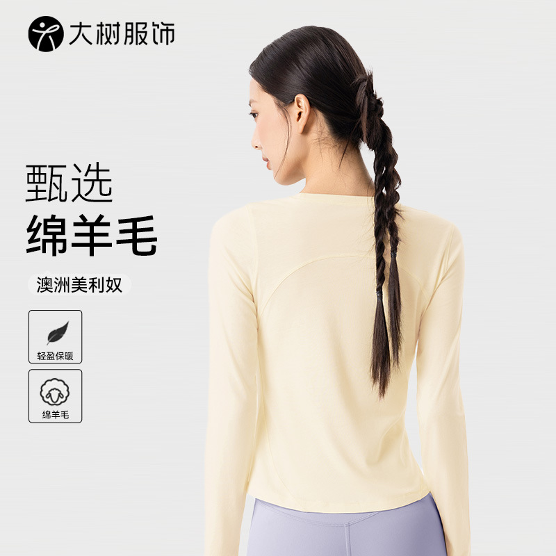 美利奴羊毛瑜伽服长袖秋款轻薄透气运动t恤普拉提训练健身上衣女
