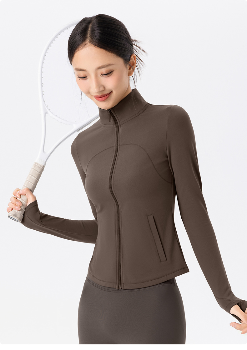 运动外套女秋冬外穿防风立领收腰显瘦长袖瑜伽服普拉提健身服上衣