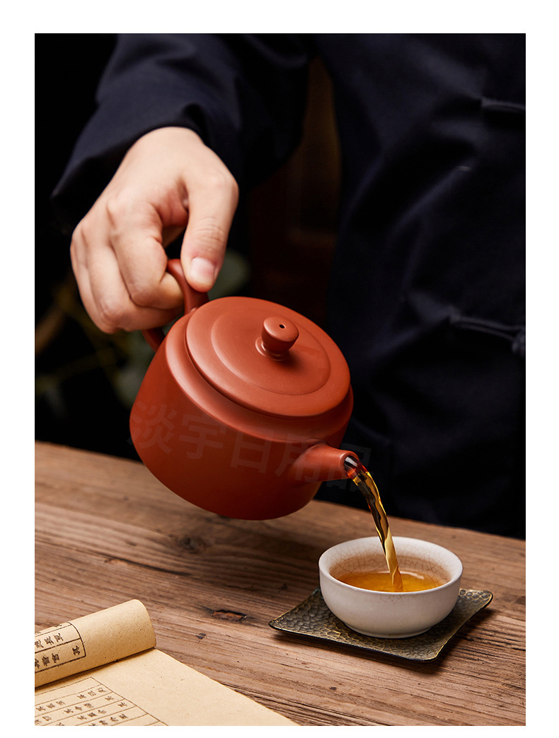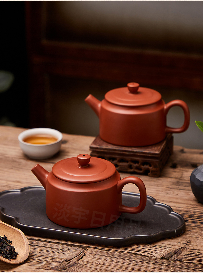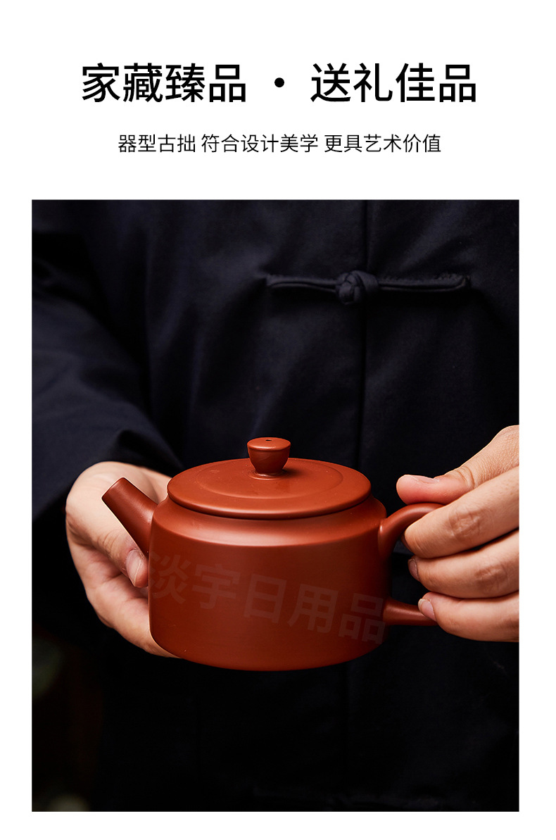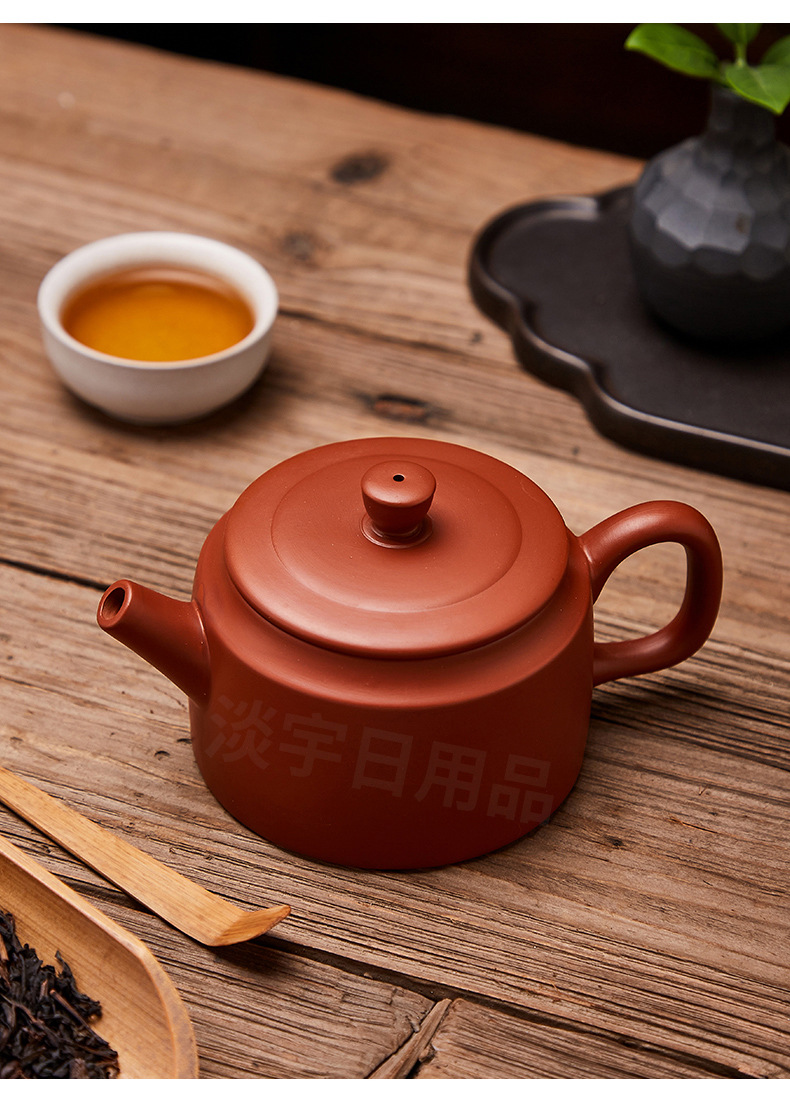 紫砂壺朱泥壺原鉱泥壺半手作りティーポット一帆風順400ml大サイズ泥壺シンプル博古