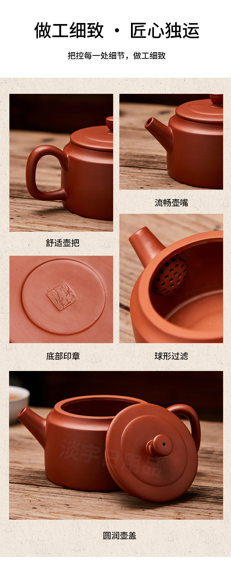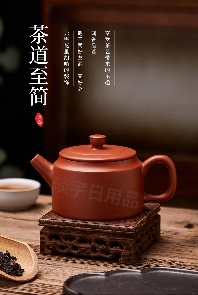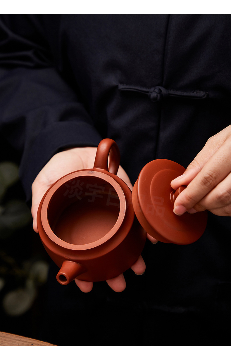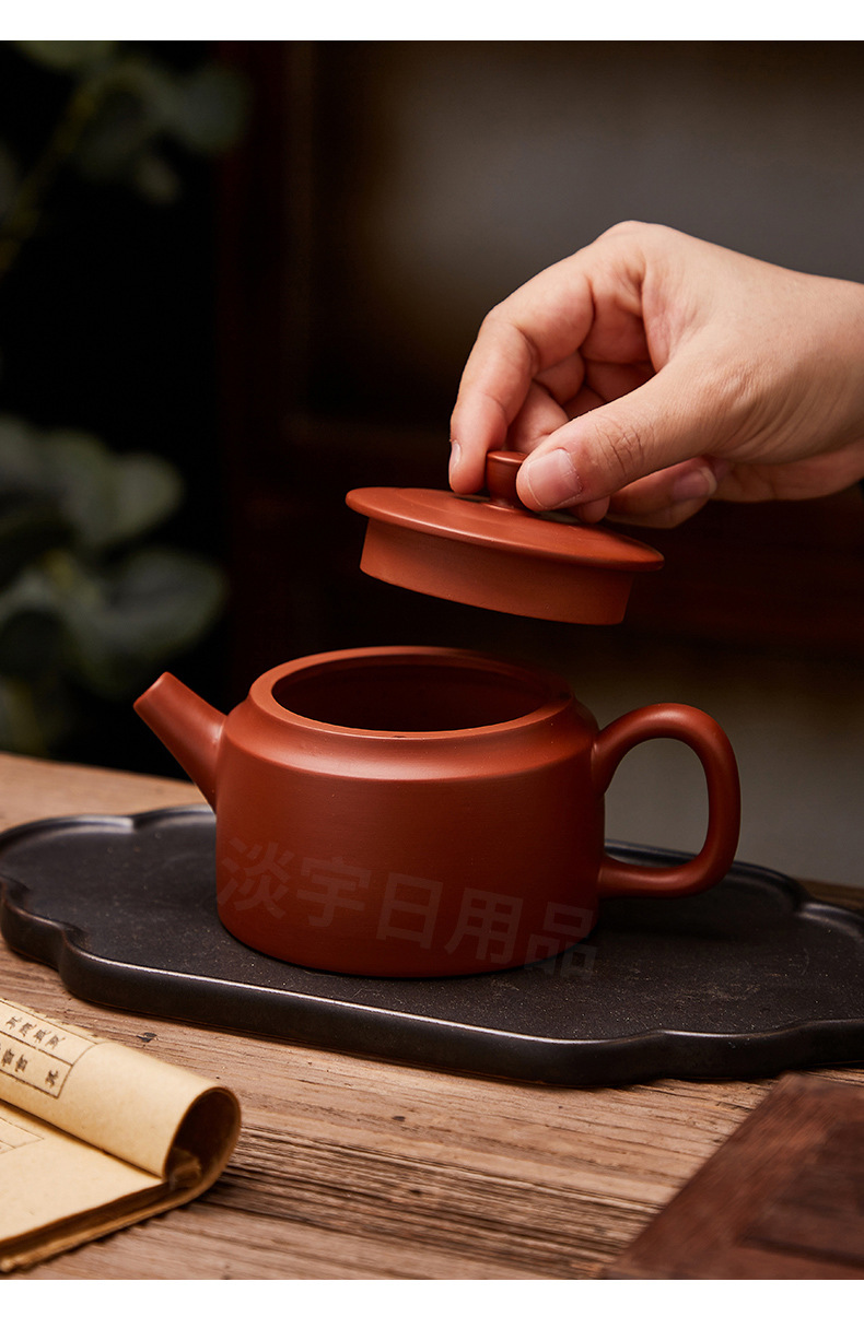 紫砂壺朱泥壺原鉱泥壺半手作りティーポット一帆風順400ml大サイズ泥壺シンプル博古
